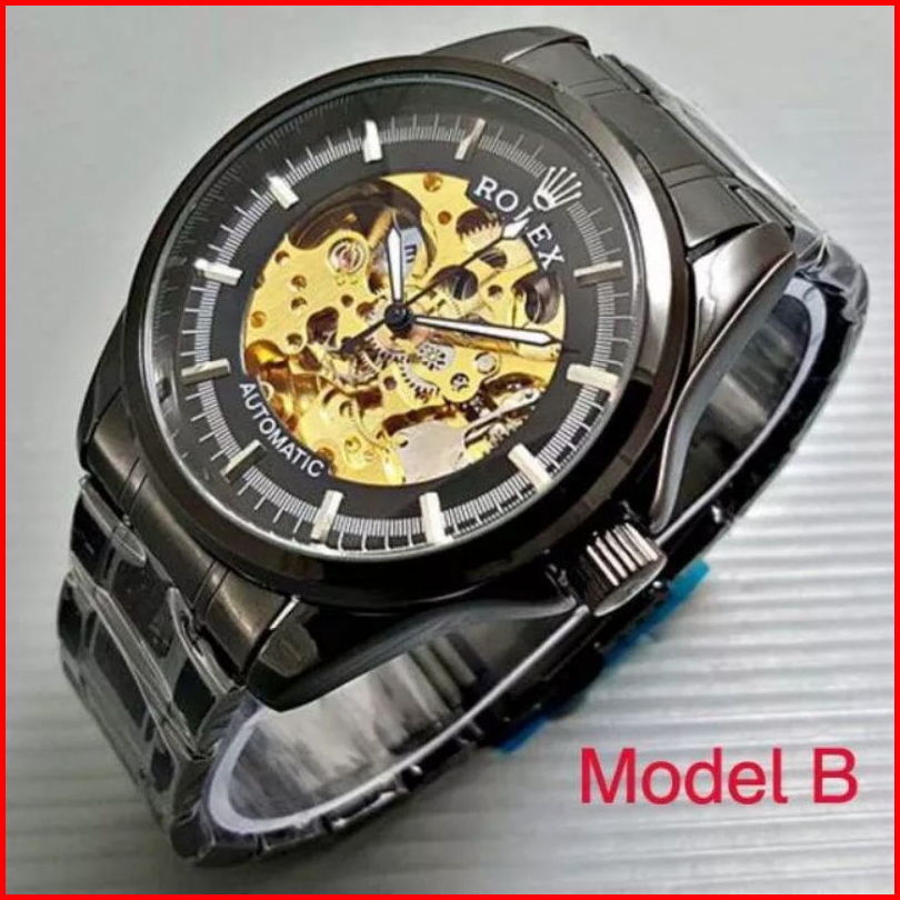 Jam Tangan Pria Rolex Rantai Automatic Tanpa Baterai Premium Transparan Free Box Rolex