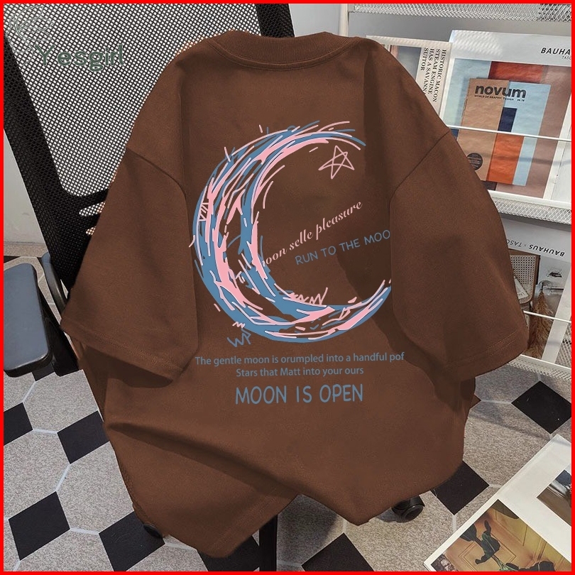 Yesgirl Korea Style Moon Is Open Print Kaos Kasual Longgar Kaos Oversize Wanita Fashion Korean Style Baju Kaos Oversize