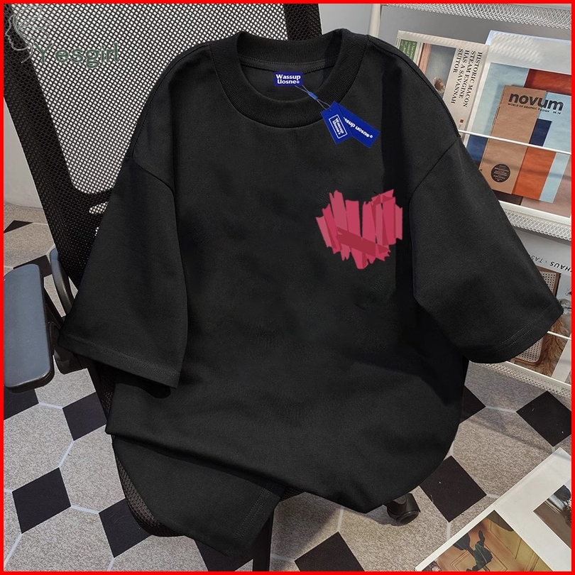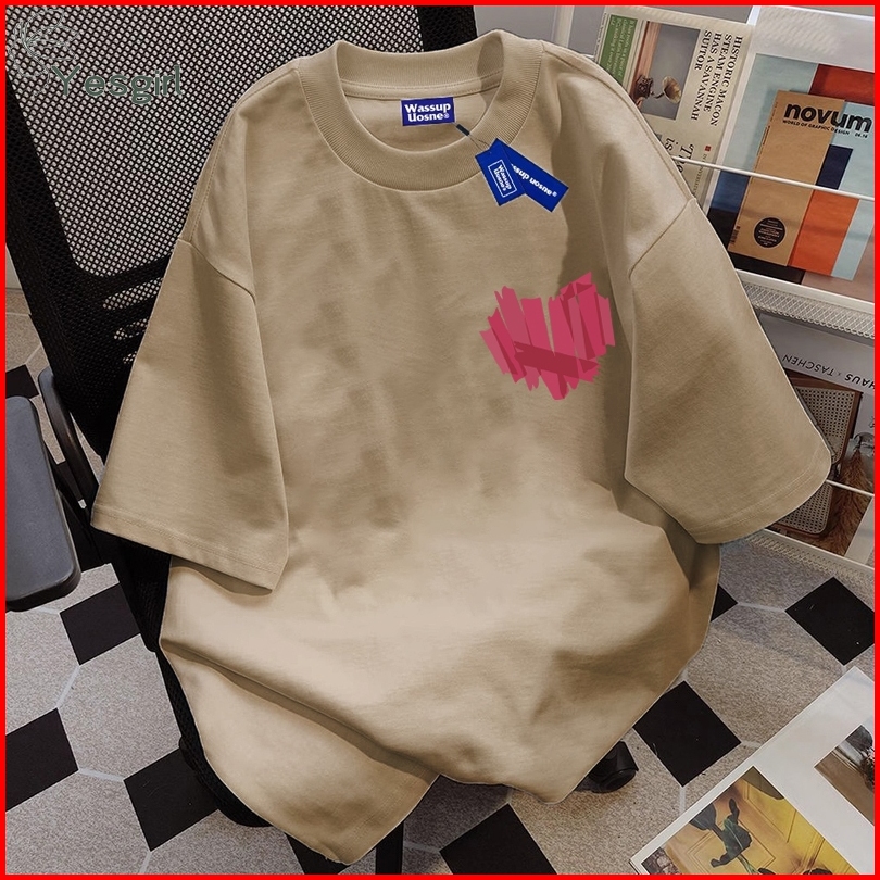 Yesgirl Korea Style Tape Heart Print Kaos Kasual Longgar Kaos Oversize Wanita Fashion Korean Style Baju Kaos Oversize Ba