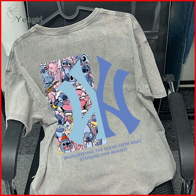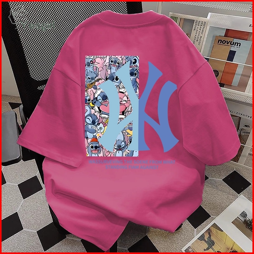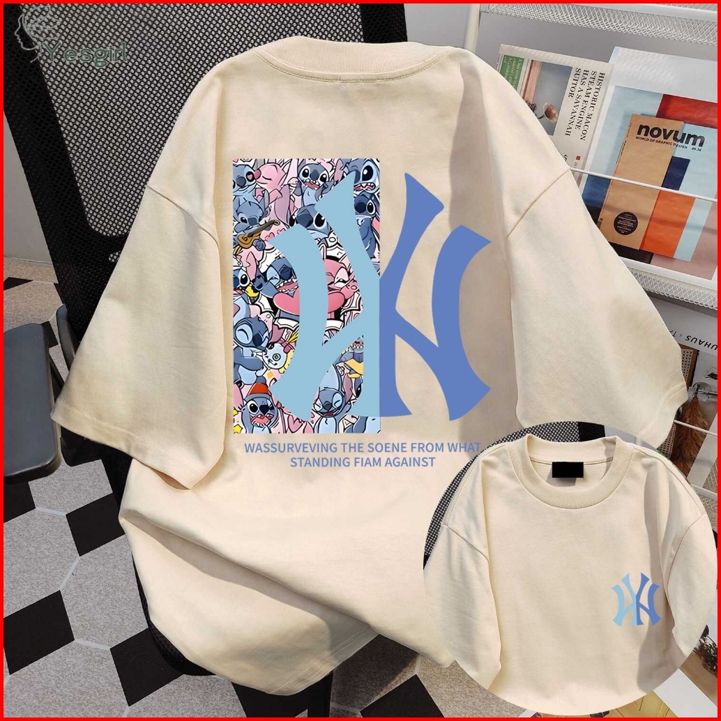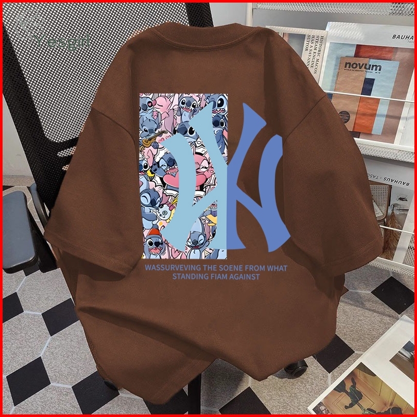 Yesgirl Korea Style Blue Mb Stitch Joint Print Kaos Kasual Longgar Kaos Oversize Wanita Fashion Korean Style Baju Kaos O