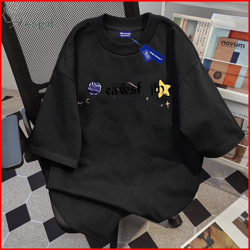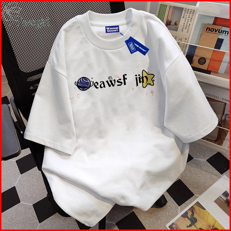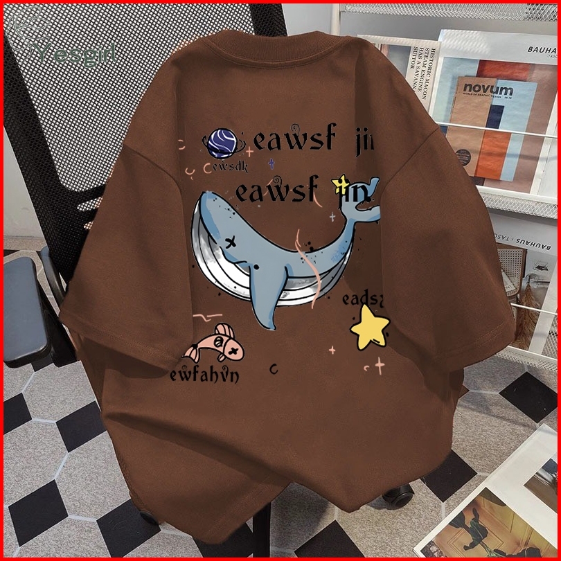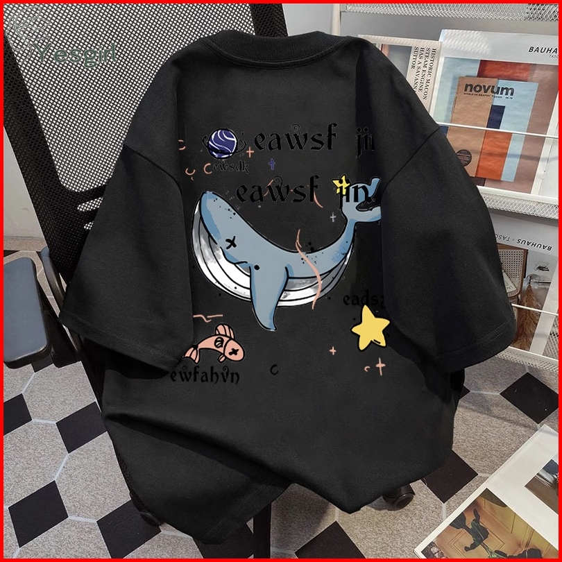 Yesgirl Korea Style Whales Of The World Print Kaos Kasual Longgar Kaos Oversize Wanita Fashion Korean Style Baju Kaos Ov