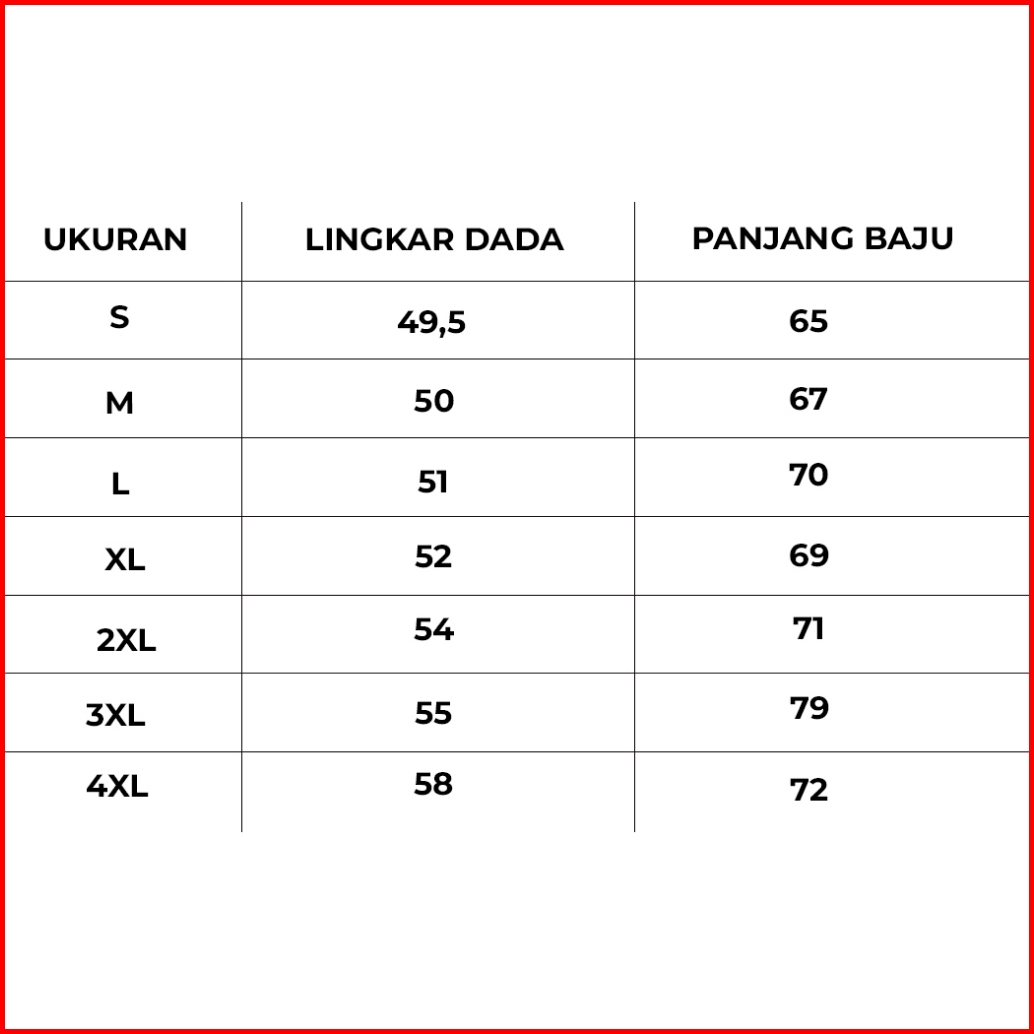 S (LD 49,5 PB 65), M (LD 50 PB 67), L (LD 51 PB 70), XL (LD 52 PB 69), XXL (LD 54 PB 71), XXXL (LD 55 PB 79), 4XL (LD 58 PB 72)