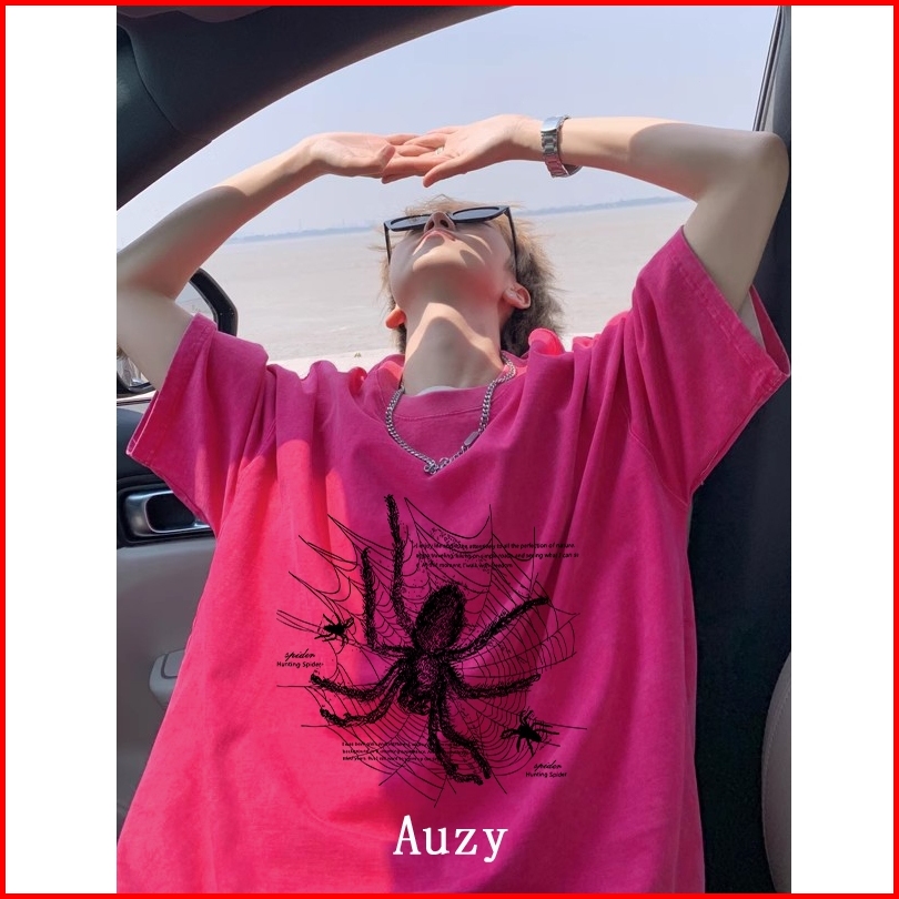 Auzy Laba-laba Retro Kaos Pria Wanita Atasan Lengan Pendek T-shirt Skena Baju Oversize T Shirt Distro Original 100