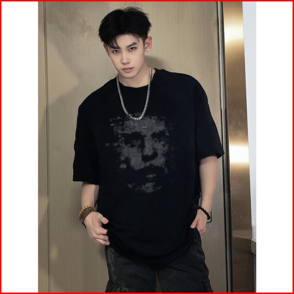 Auzy Hitam Smudge Trendi Kasual Kaos Pria Wanita Atasan Lengan Pendek T-shirt Skena Baju Oversize T Shirt Distro Origina