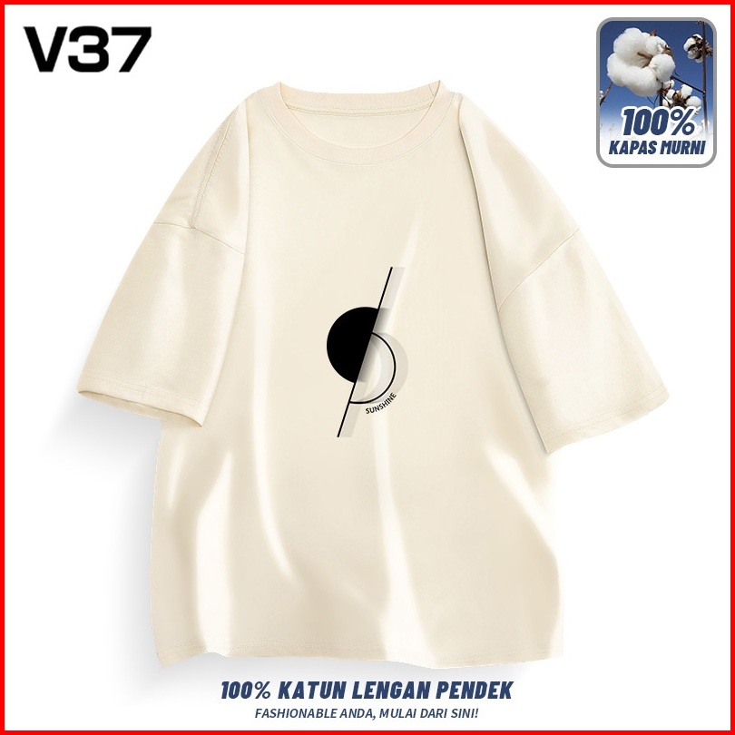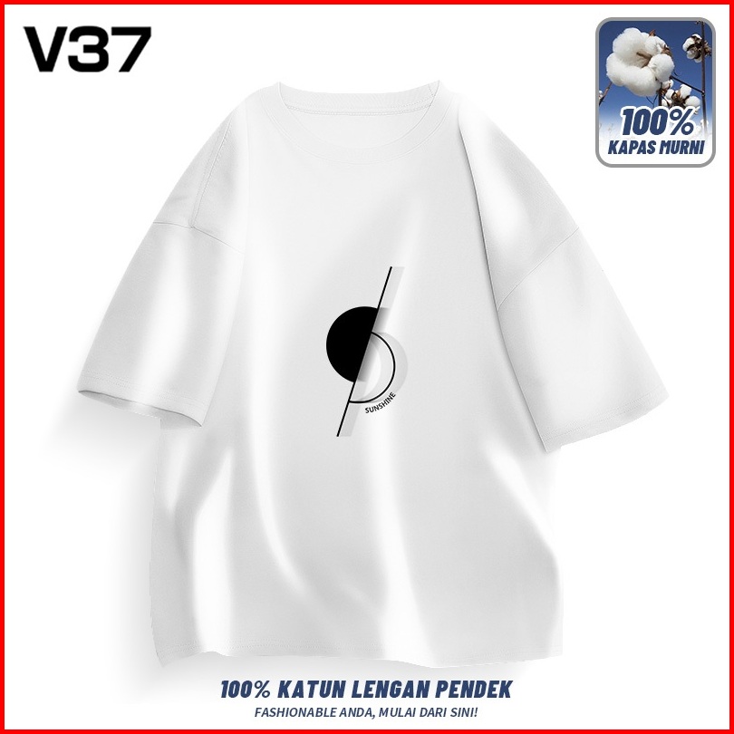 V37 T Shirt Kaos Pria Katun Lengan Pendek Logo Script T-shirt