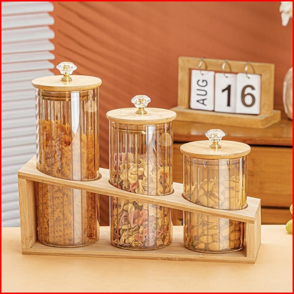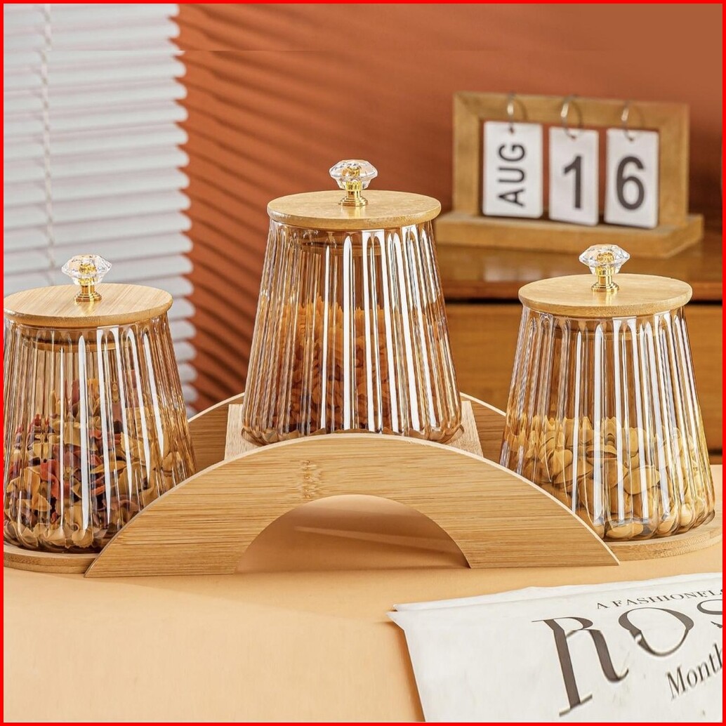 Set Toples Lebaran Snack Kue Kacang Permen Storage Jar Isi 3 Dengan Tatakan Kayu Cute