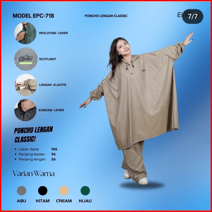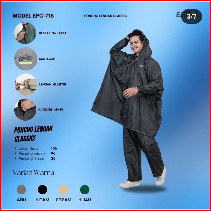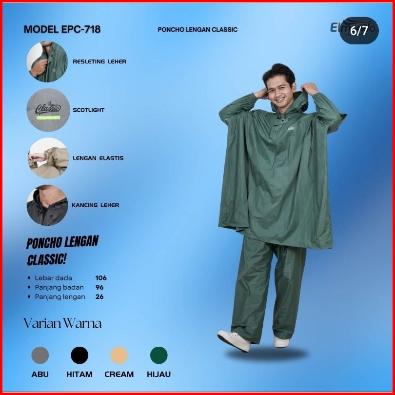 Classic 718 - Jas Hujan Elmondo Setelan Pria Wanita - Mantel Ujan Jumbo