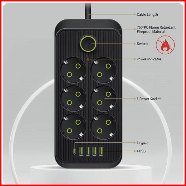 Smartcom Terminal Listrik Socket Charger Adapter 8 Port Usb 4 Socket 1 Type-c Power Strip