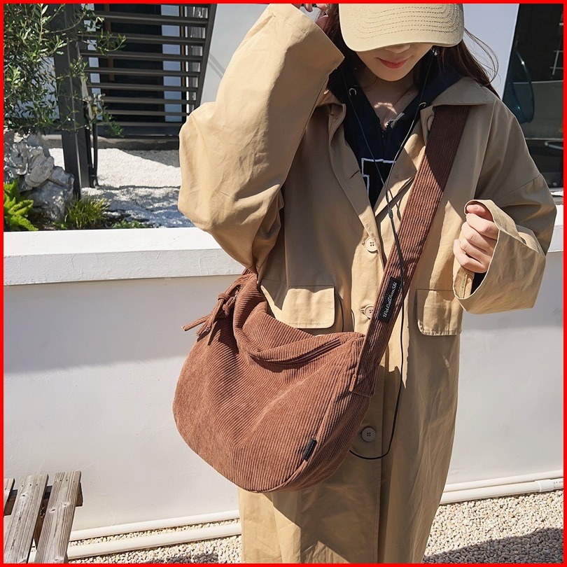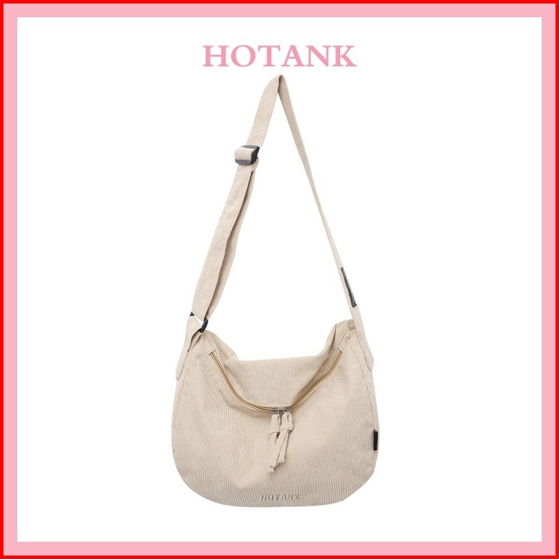 Hotank Tas Pangsit Korduroi Kasual Tas Selempang Tas Selempang Mahasiswa Wanita Tas Komuter Kelas Tas Bahu Mode Berkapas