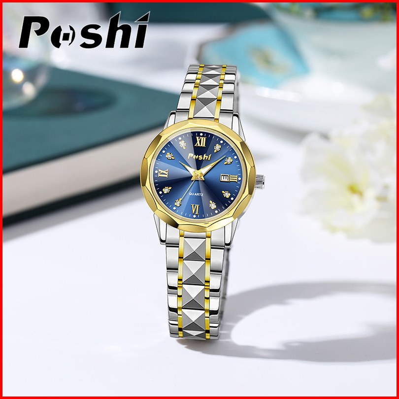 Jam Tangan Wanita Modis Alloy Ringan Tahan Air Dengan Kalender Gaya Fashion - Poshi Watches Ps992