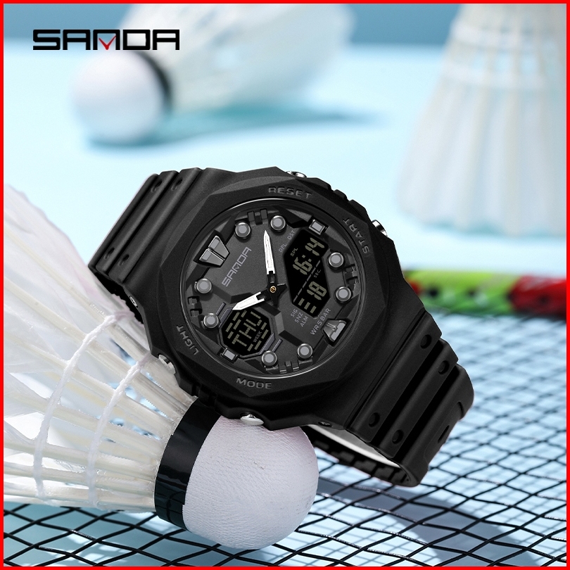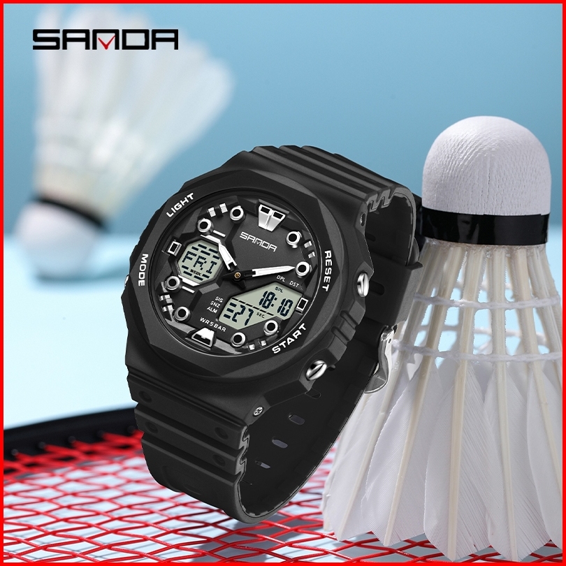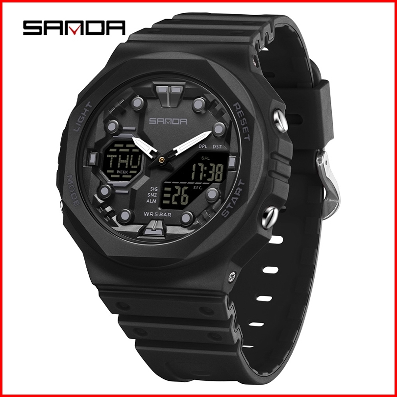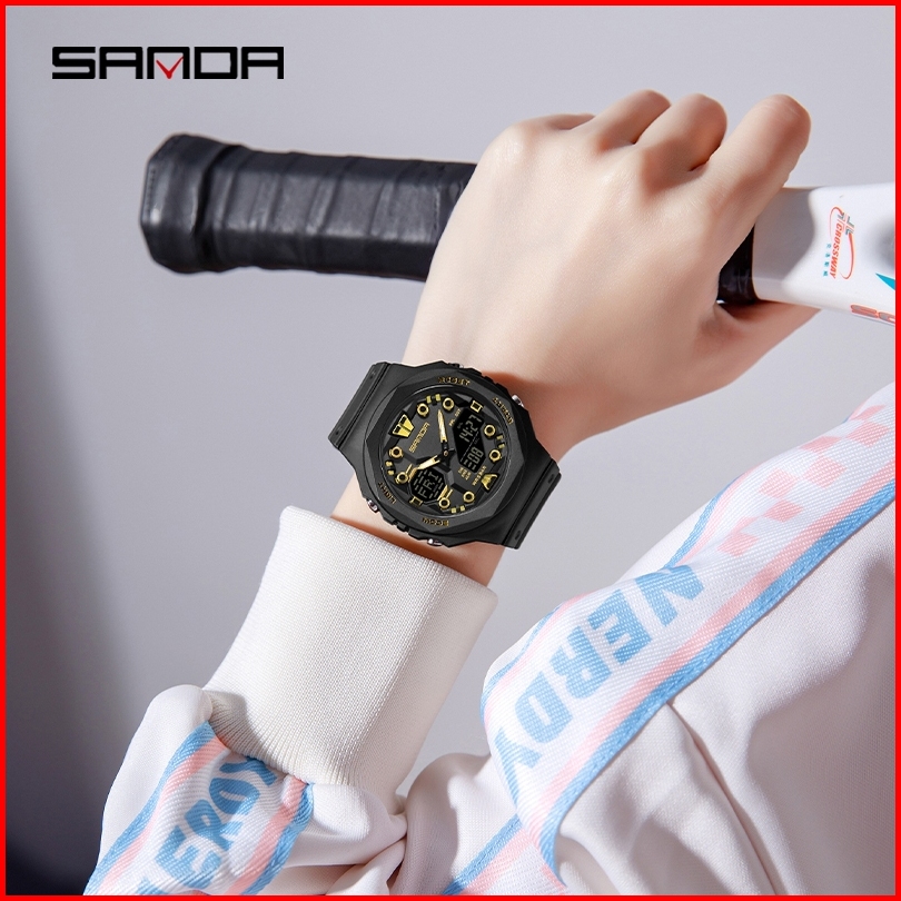 Sanda 6200 Jam Tangan Pria Wanita Digital Analog Sport El Backlight Tali Rubber Anti Air