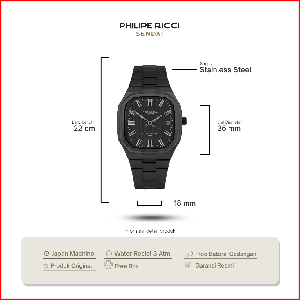 Philipe Ricci Sendai Jam Tangan Pria Rantai Stainless Steel Simple Terbaru Keren 6339 Men Watches