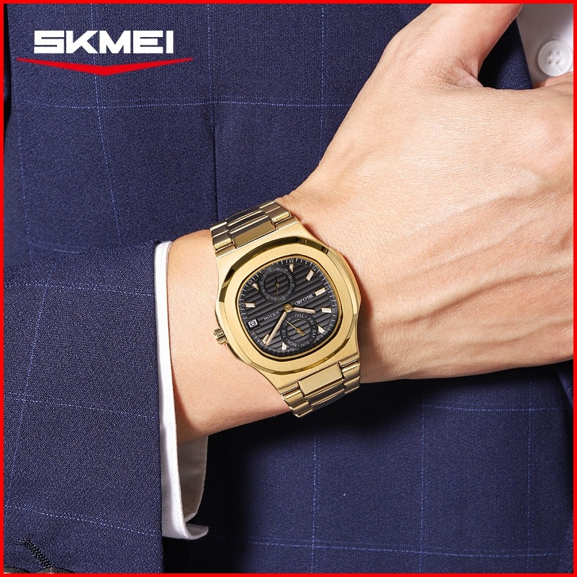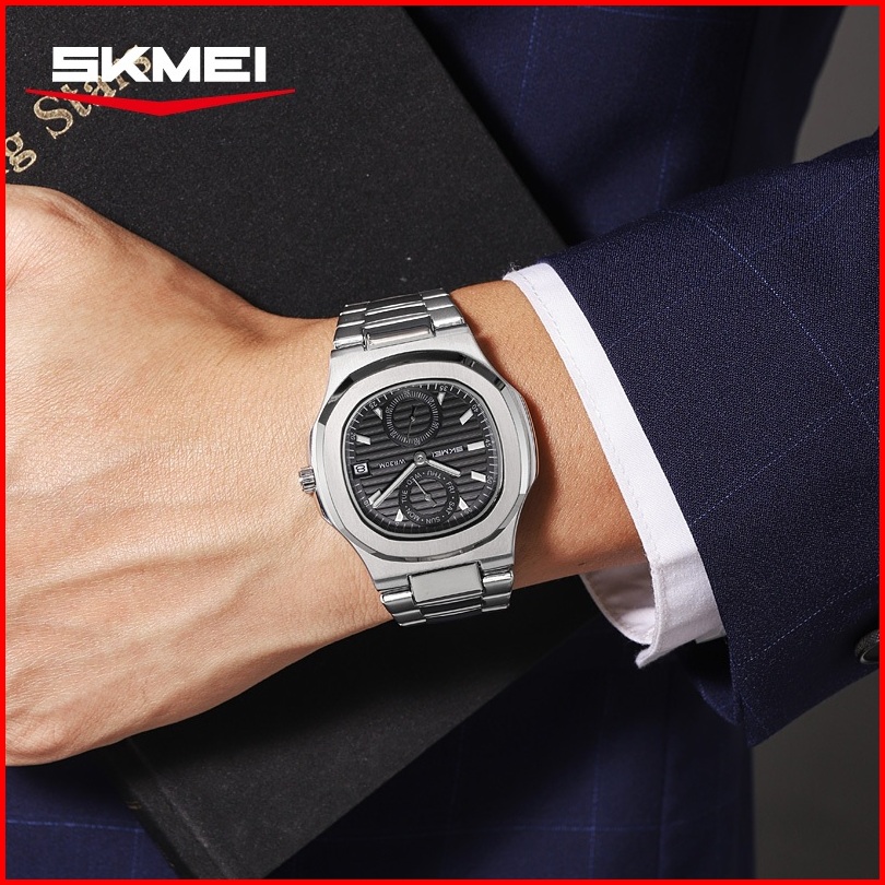 Skmei 2423 Jam Tangan Pria Analog Chronograph Tali Stainless Steel Mgos