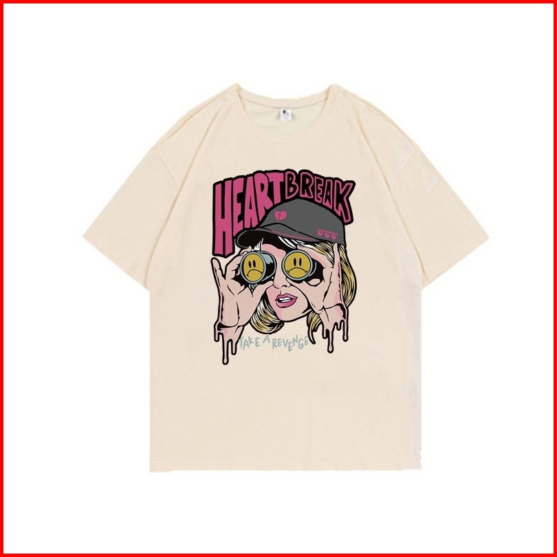 Yesgirl Cetakan Gadis Mode Cotton Atasan Kaos Kaos Lucu Wanita T-shirt Lengan Pendek Baju Kaos Oversize Wanita Baju Kaus