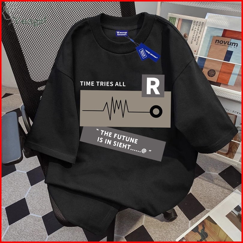 Yesgirl Korea Style Time Tries All Print Kaos Kasual Longgar Kaos Oversize Wanita Fashion Korean Style Baju Kaos Oversiz