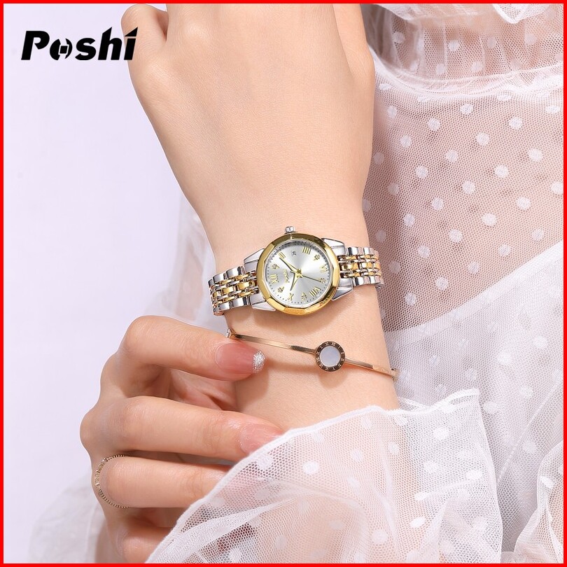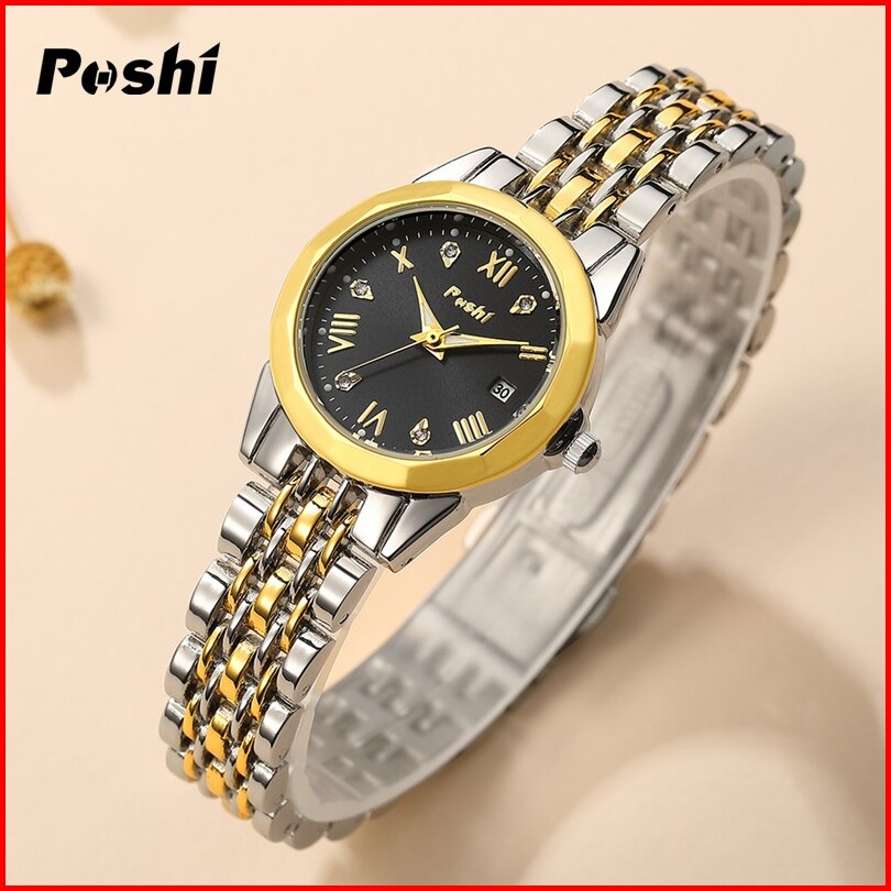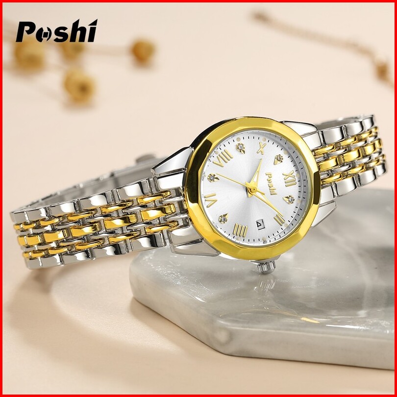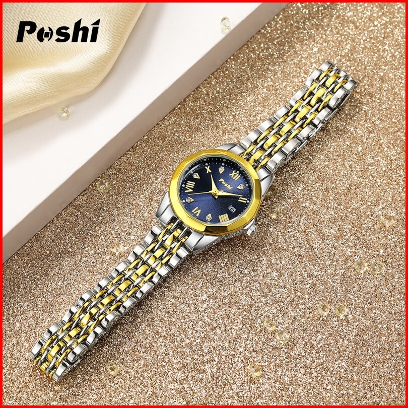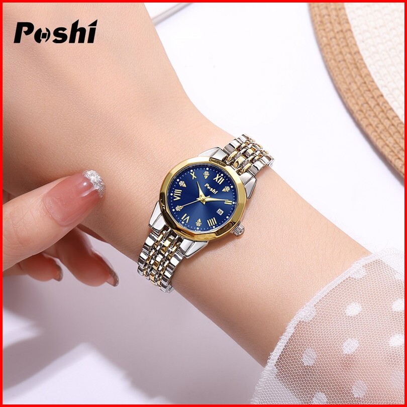 Jam Tangan Wanita Poshi Tahan Air Dengan Tali Stainless Steel Dan Dial Biru Elegan - Watches Ps935