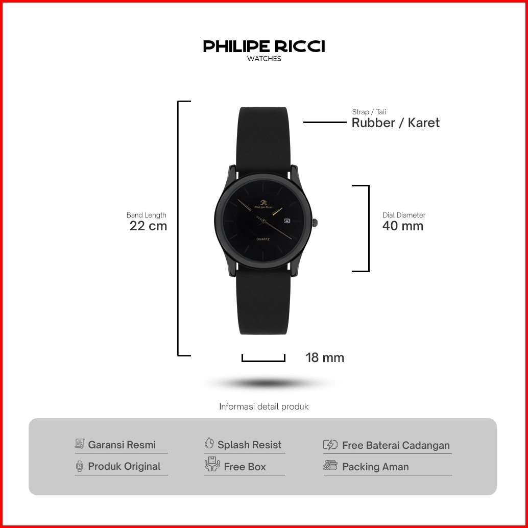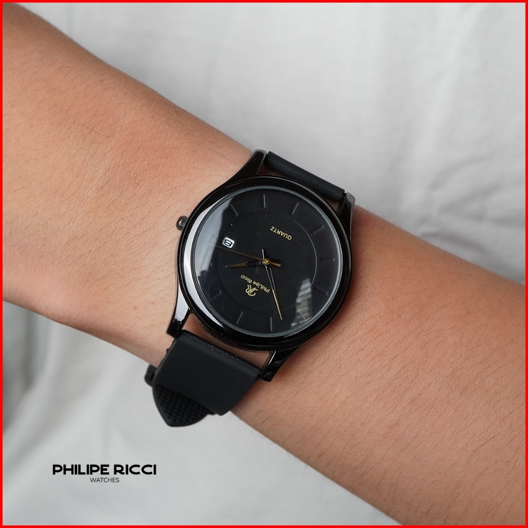 Philipe Ricci Jam Tangan Pria Karet Hitam Simple Keren Terbaru Original 100 7619 Free Baterai