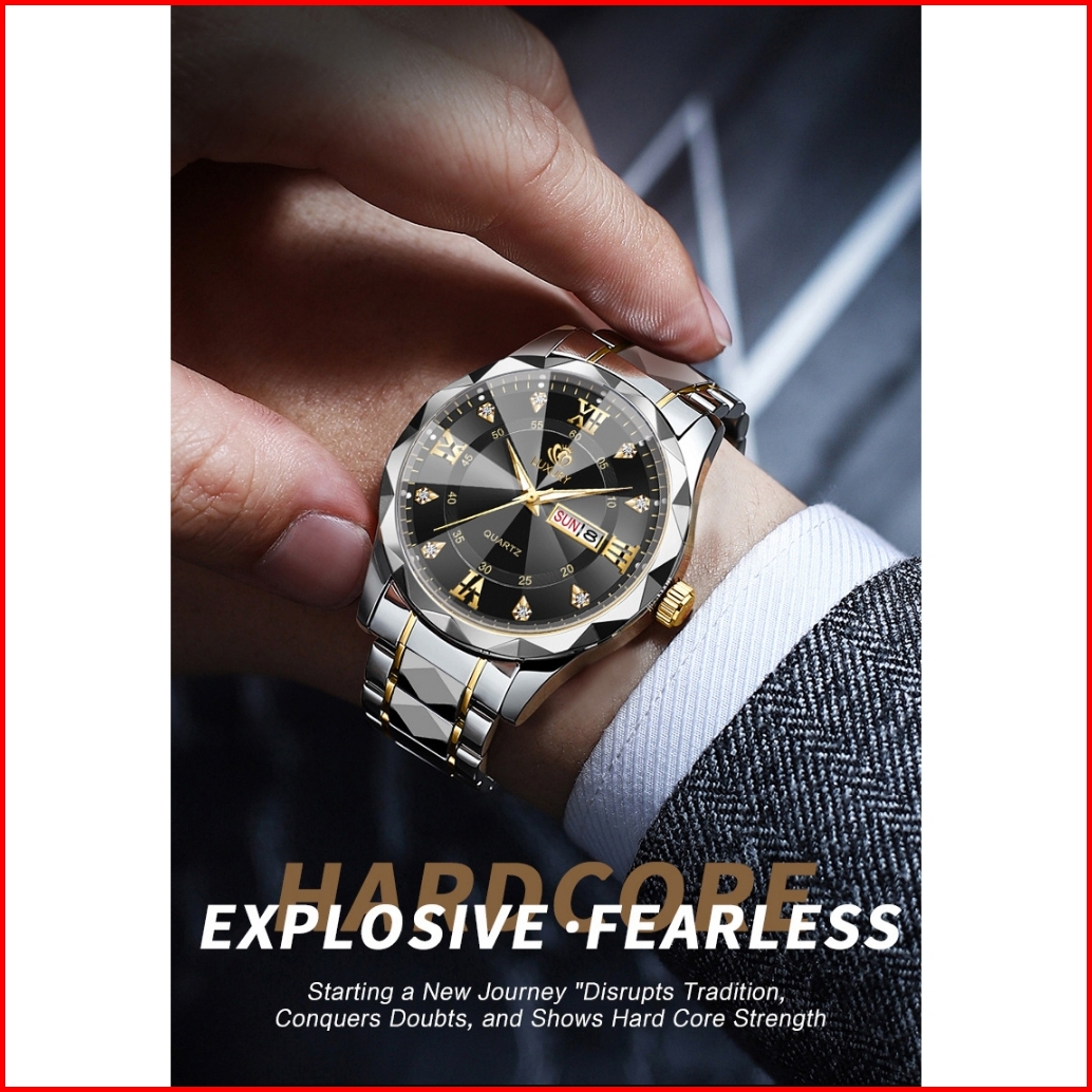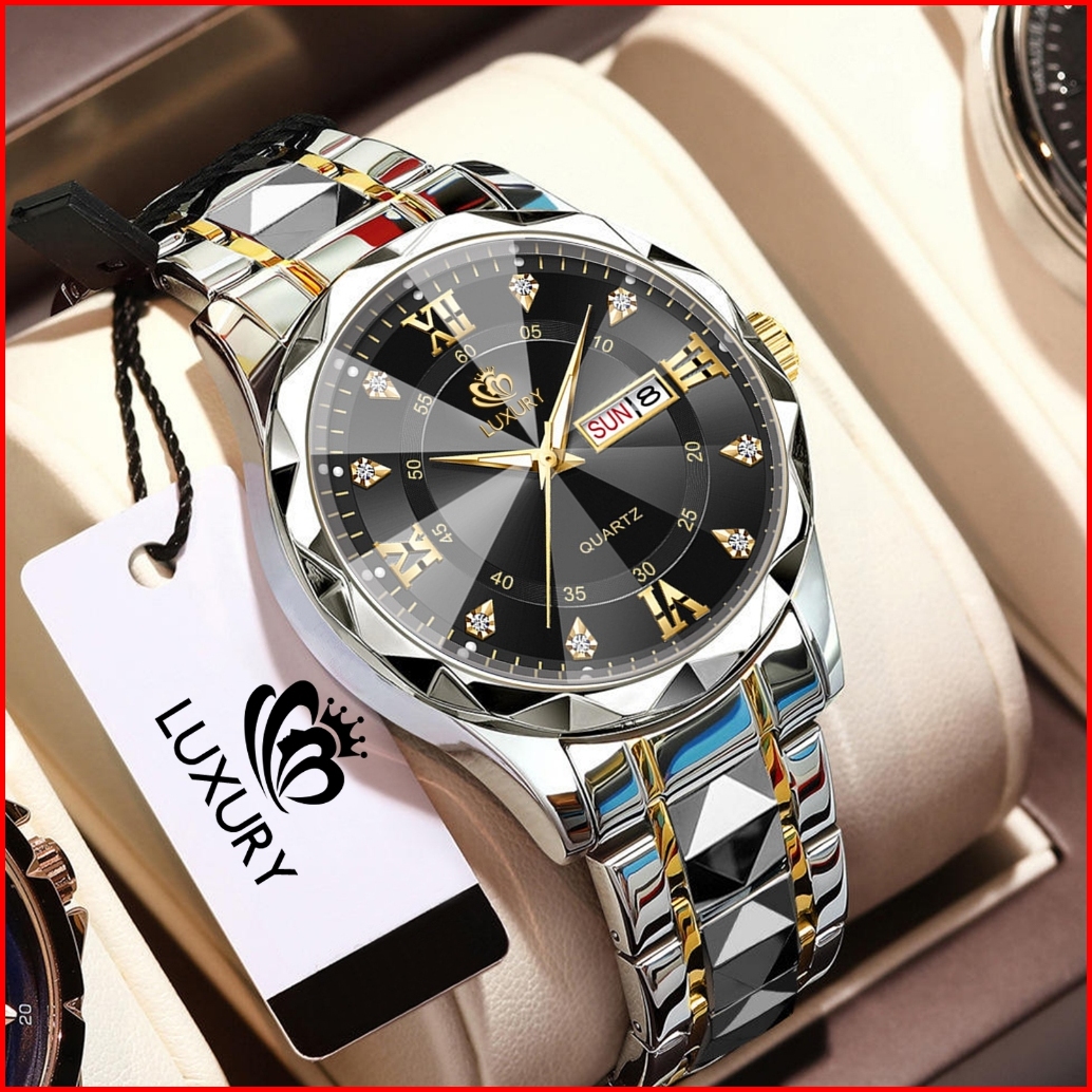 Jam Tangan Pria Luxury Anti Air Original Anti Karat Bercahaya Kalender Quartz Watch Men