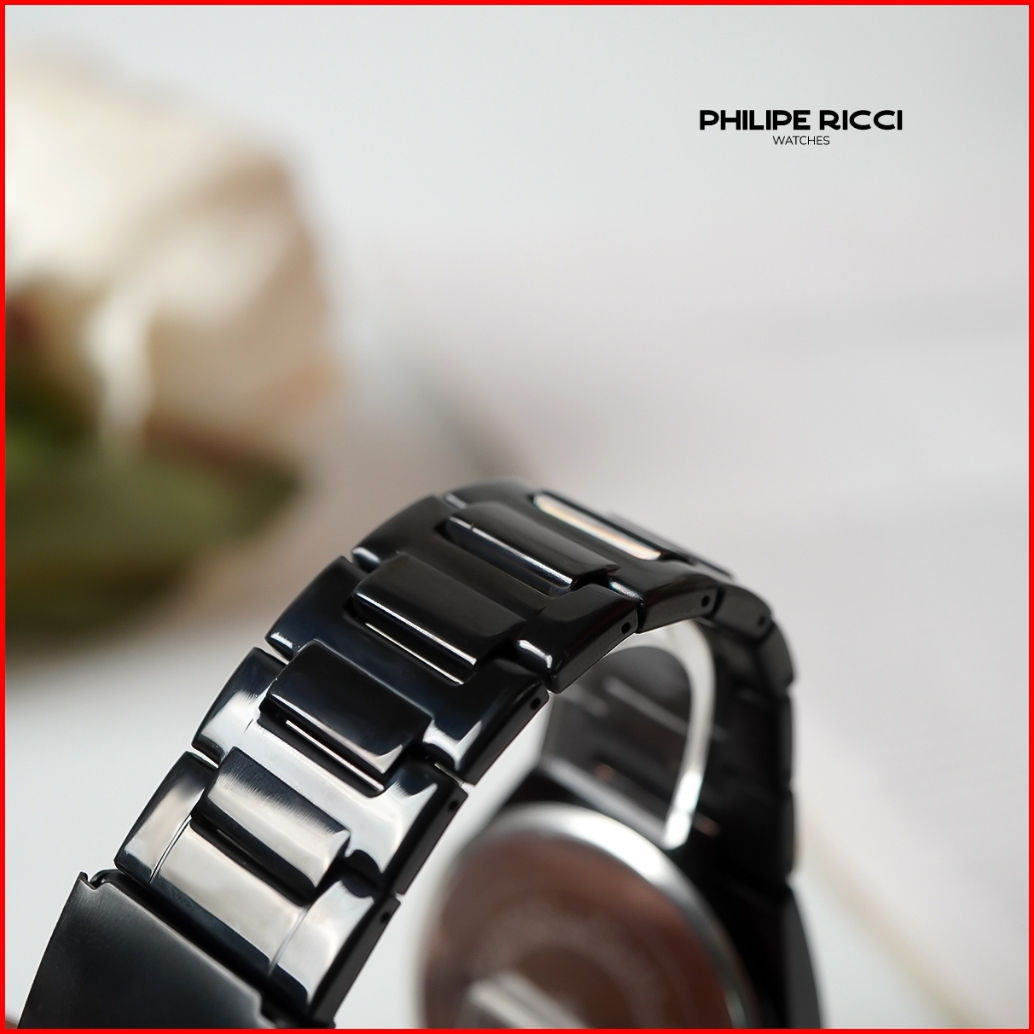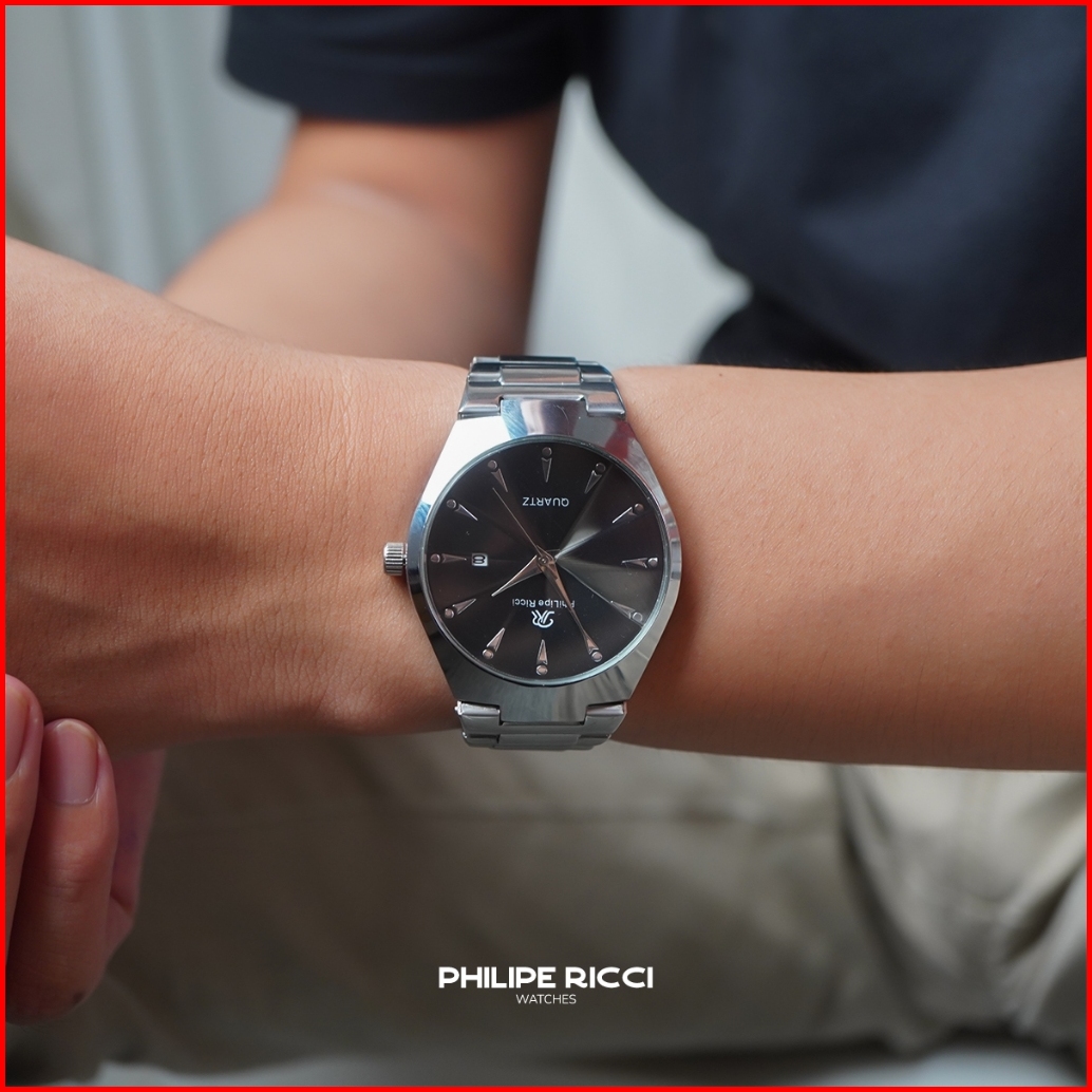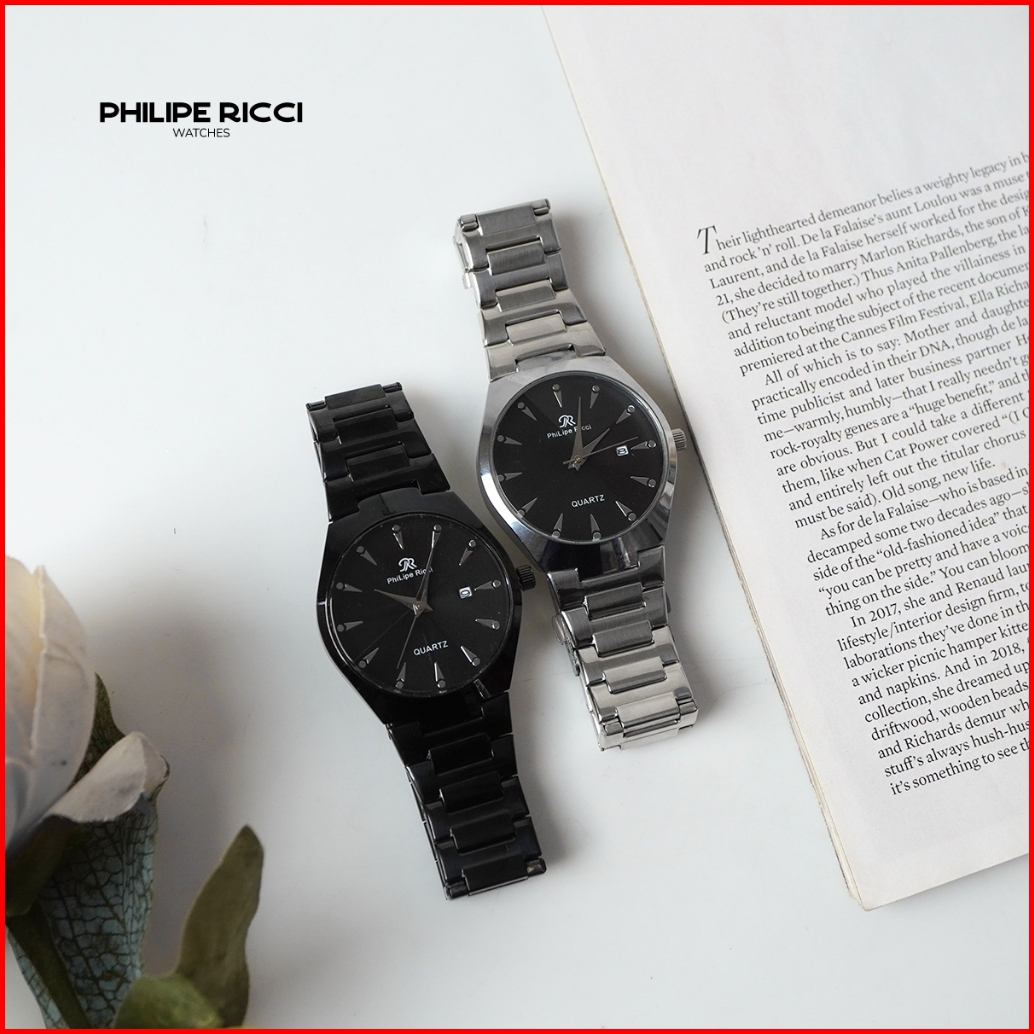 Philipe Ricci Jam Tangan Pria Rantai Analog Hitam Tipis 100 Ori Keren 7597 Men Watches Free Baterai