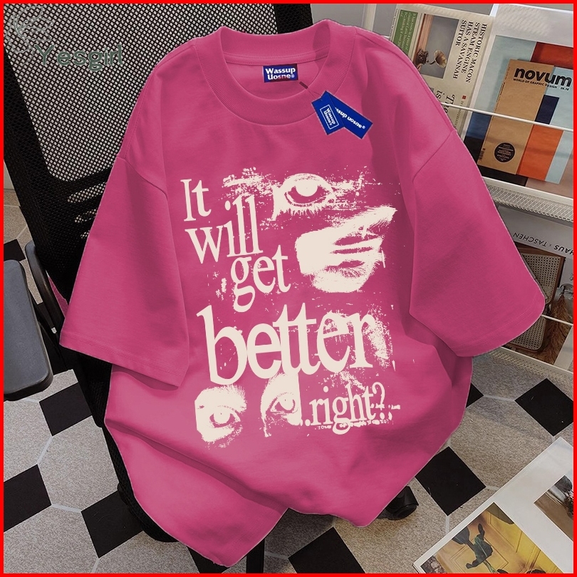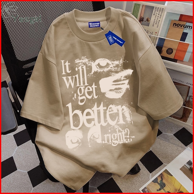 Yesgirl Korea Style Frasa Alfabet Print Kaos Kasual Longgar Kaos Oversize Wanita Fashion Korean Style Baju Kaos Oversize