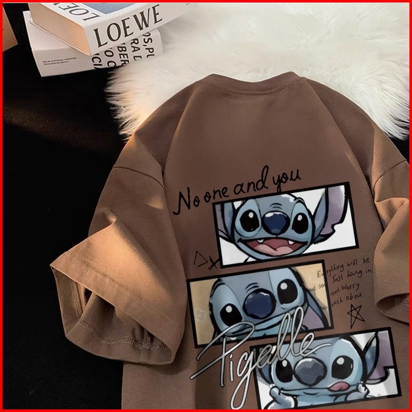 Forteid T-shirt Washed Oversize Cetakan Pola Jahitan Lucu Baju Atasan Lengan Pendek Wanita Kaos Oversize Terbaru Kaos Lu