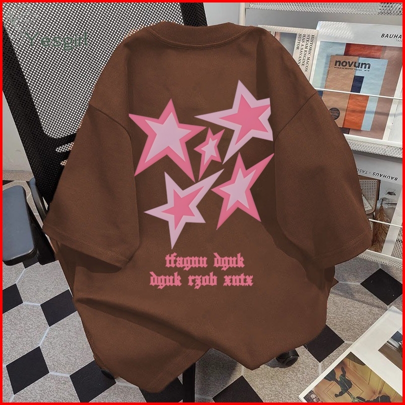 Yesgirl Korea Style Bintang Merah Muda Print Kaos Kasual Longgar Kaos Oversize Wanita Fashion Korean Style Baju Kaos Ove