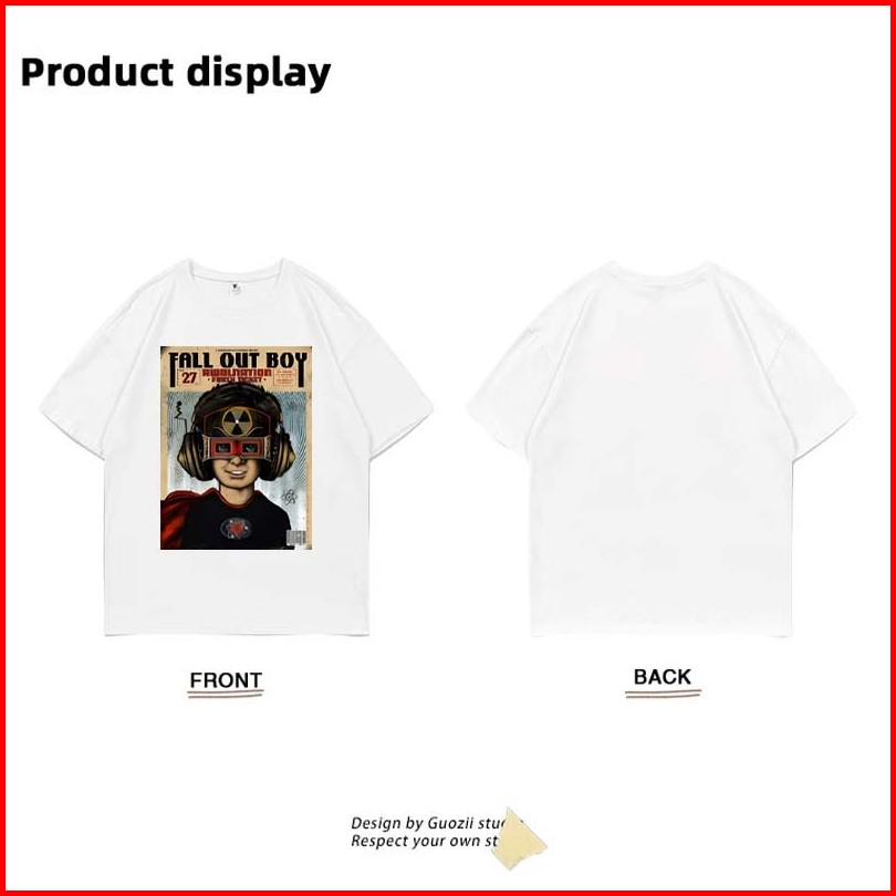 Bosgo T-shirt Oversize Vintage Fall Out Boy Lengan Pendek Katun Kaos Vintage Pria Wanita Combed 24s