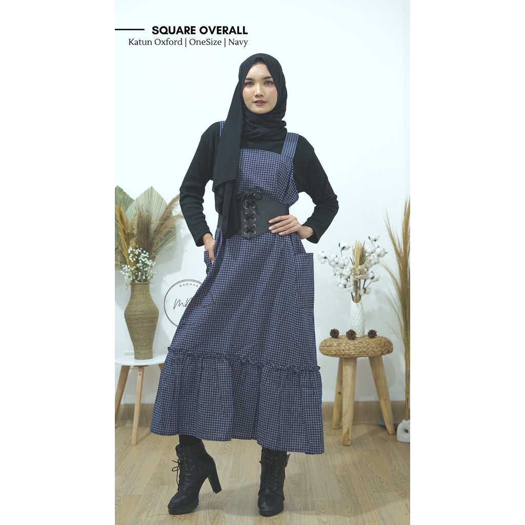 Square Overall Dress Kotak Kotak Wanita Tanpa Inner Kekinian Jumbo Nevy