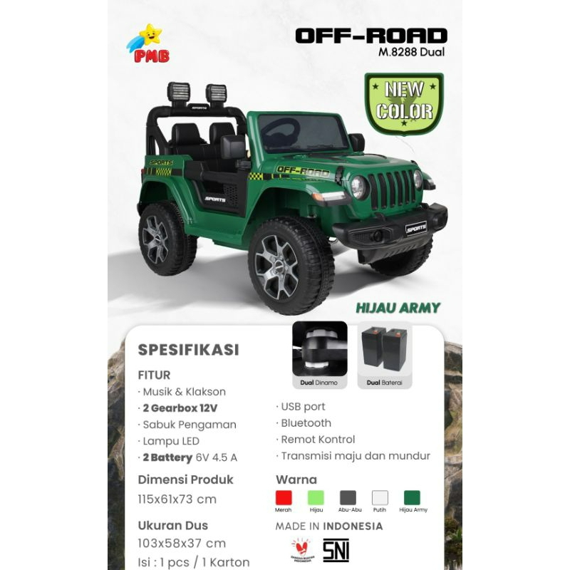 MOBIL AKI ANAK JEEP PMB M 8288 8299B DUAL DYNAMO ACCU EXOTIC MAINAN REMOTE JUMBO LAKI PEREMPUAN BISA DINAIKI BERKUALITAS