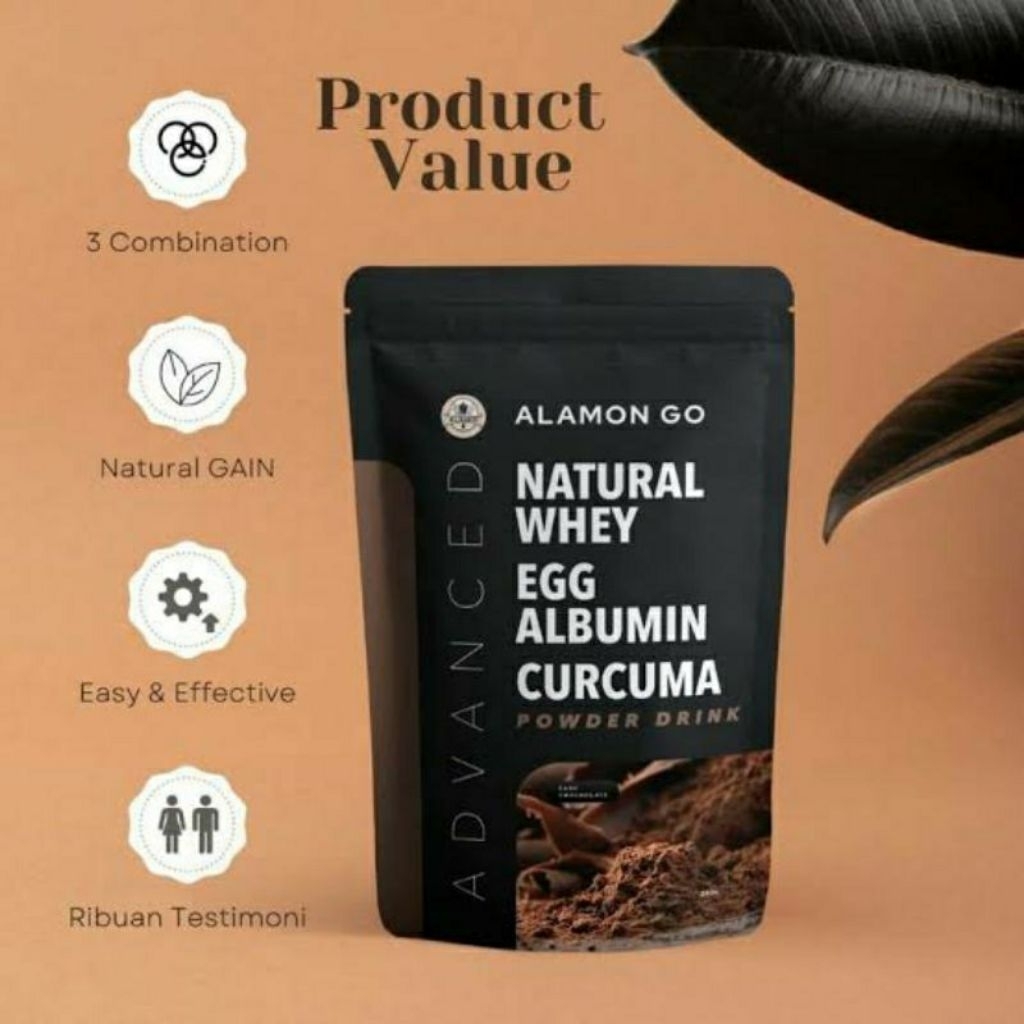 Alamon GO GAIN 200 gram Penambah Penggemuk Berat Badan Natural Whey + Albumin + temulawak