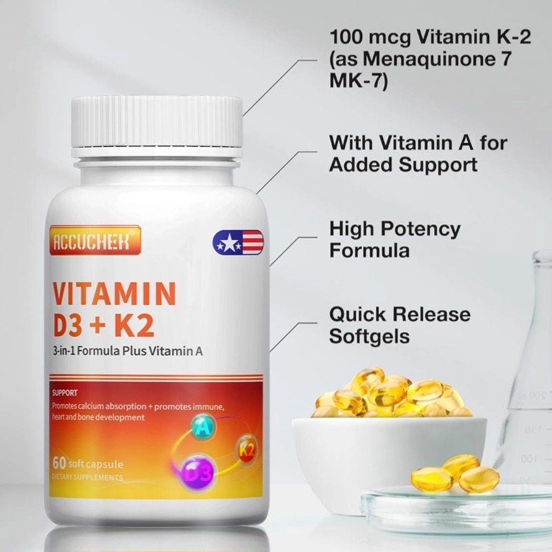 Vitamin D3 + K2 - Suplemen Mk7 Untuk Mendukung Perawatan Sendi, Imunitas, Kekuatan Tulang Dan Kesehatan Jantung 60 Kapsu