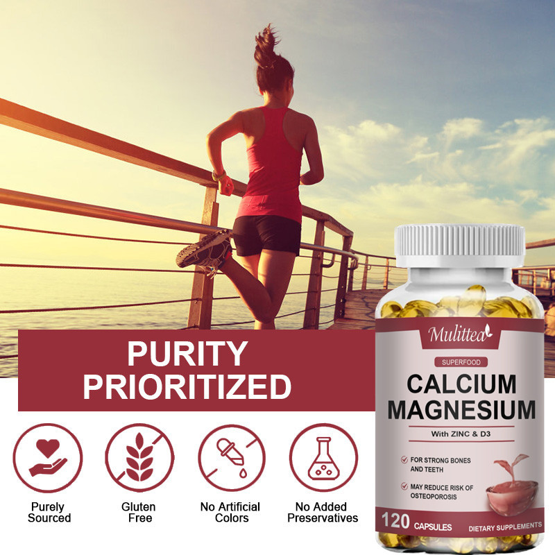 Calcium 1000mg Magnesium 400mg Zinc 25mg Vitamin D3 Capsules 600iu Promotes Bone&Muscle&Nervous System Health and Promot