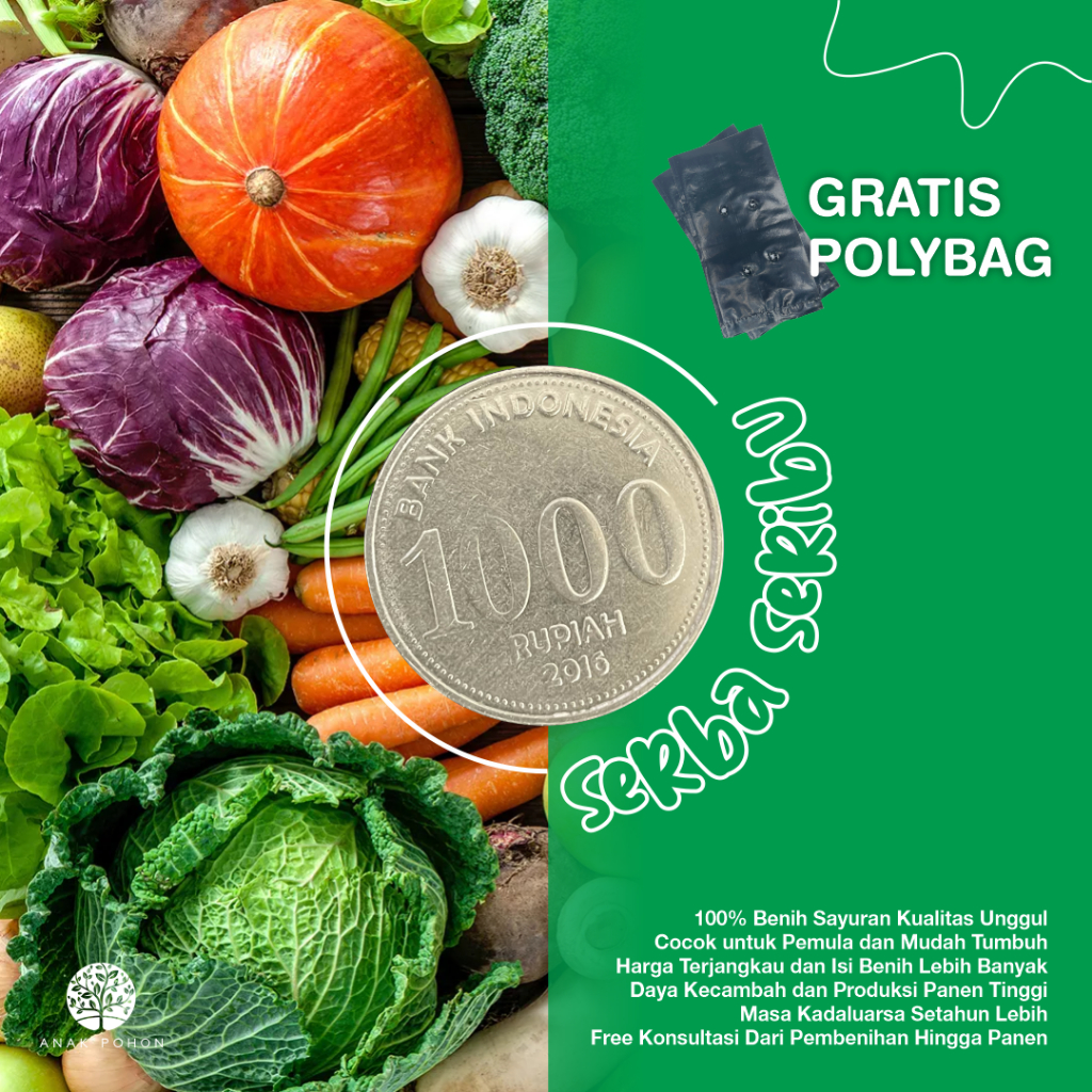 SERBA SERIBU - Benih Bibit Biji - Paket Benih Sayuran DAUN Termurah Terlaris Kangkung Sawi Selada Seledri Bayam Daun Bawang Kemangi Kol Brokoli - BONUS POLYBAG