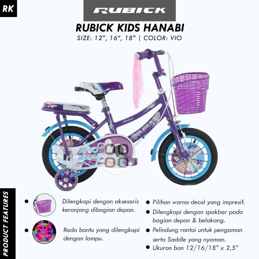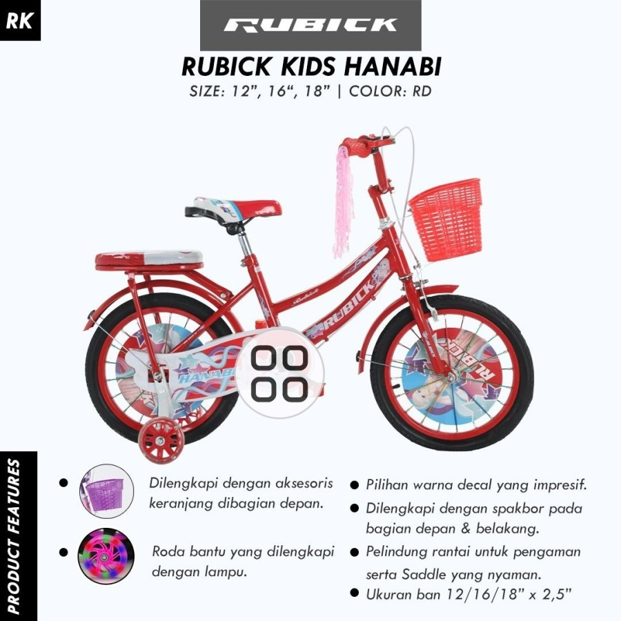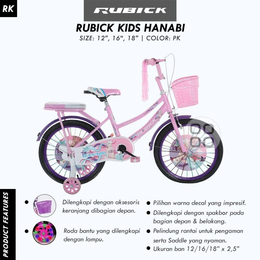 SEPEDA ANAK PEPEMPUAN MINI 12 16 18 INCH NEW RUBICK BY UNITED USIA 3 - 9 TAHUN KERANJANG BONCENGAN PREMIUM SNI TERMURAH
