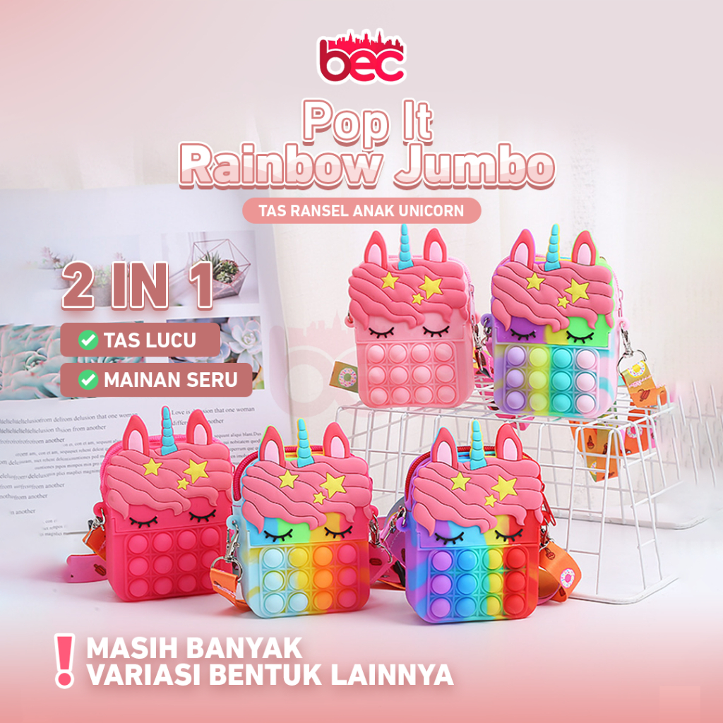 Pop It JUMBO Murah Rainbow Unicorn Mainan Tas Sekolah Tenteng Selempang Tas Ransel Tas Anak Tiktok Popit