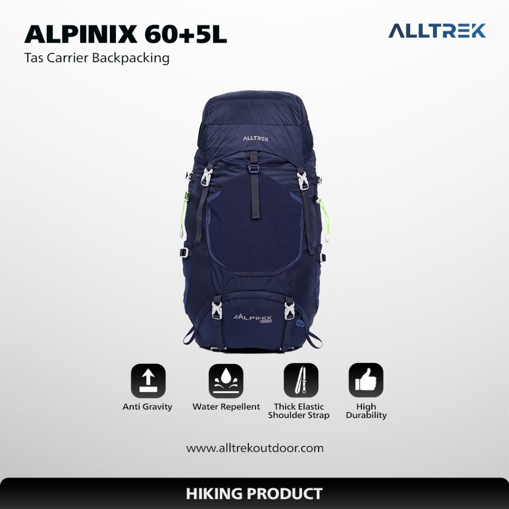 ALLTREK Tas Gunung ALPINIX 60+5L Hiking Carrier Ransel Anti Gravity