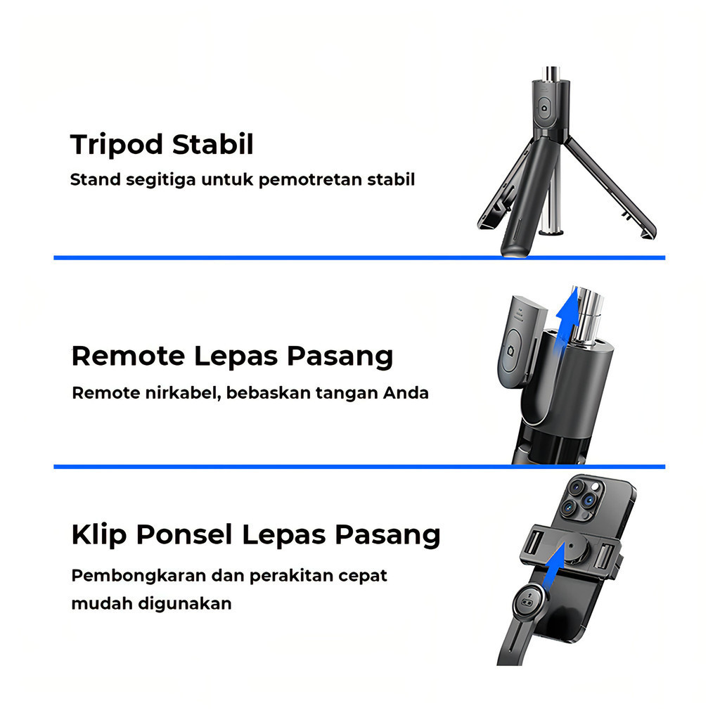 Heefn F01 Portable Selfie Stick Integrated Tripod 70cm 360° Rotation