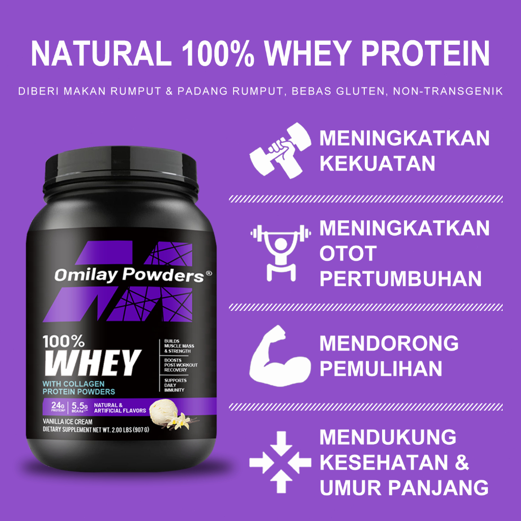Omilay Whey Protein Powder Susu Protein Fat Burner Suplemen with BCAA Rasa Cokelat Susu 2LBS