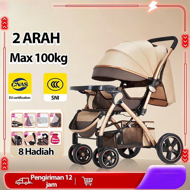 STROLLER BAYI LIPAT TROLI BEIGE CABIN SIZE DENGAN NAMPAN MAKAN KERETA DORONG BABY TRAVELLING MAX BEBAN 110KG BERKUALITAS