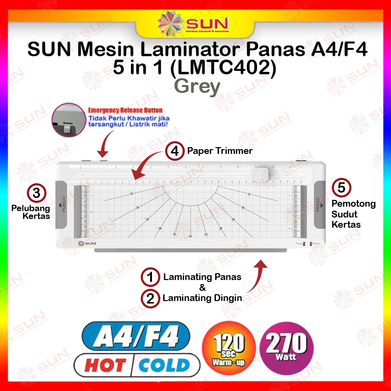 Mesin Laminating SUN LMTC / LME A4 / F4 - Plastik Laminating A3 / F4 / A4 - Laminating Panas & Laminasi Dingin untuk KTP