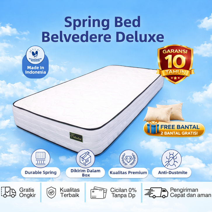 [Mall] Kasur Spring Bed Belvedere Deluxe Central Set Bantal Elite 120x200 160x200 180x200 Royal Foam Bigland Busa Murah