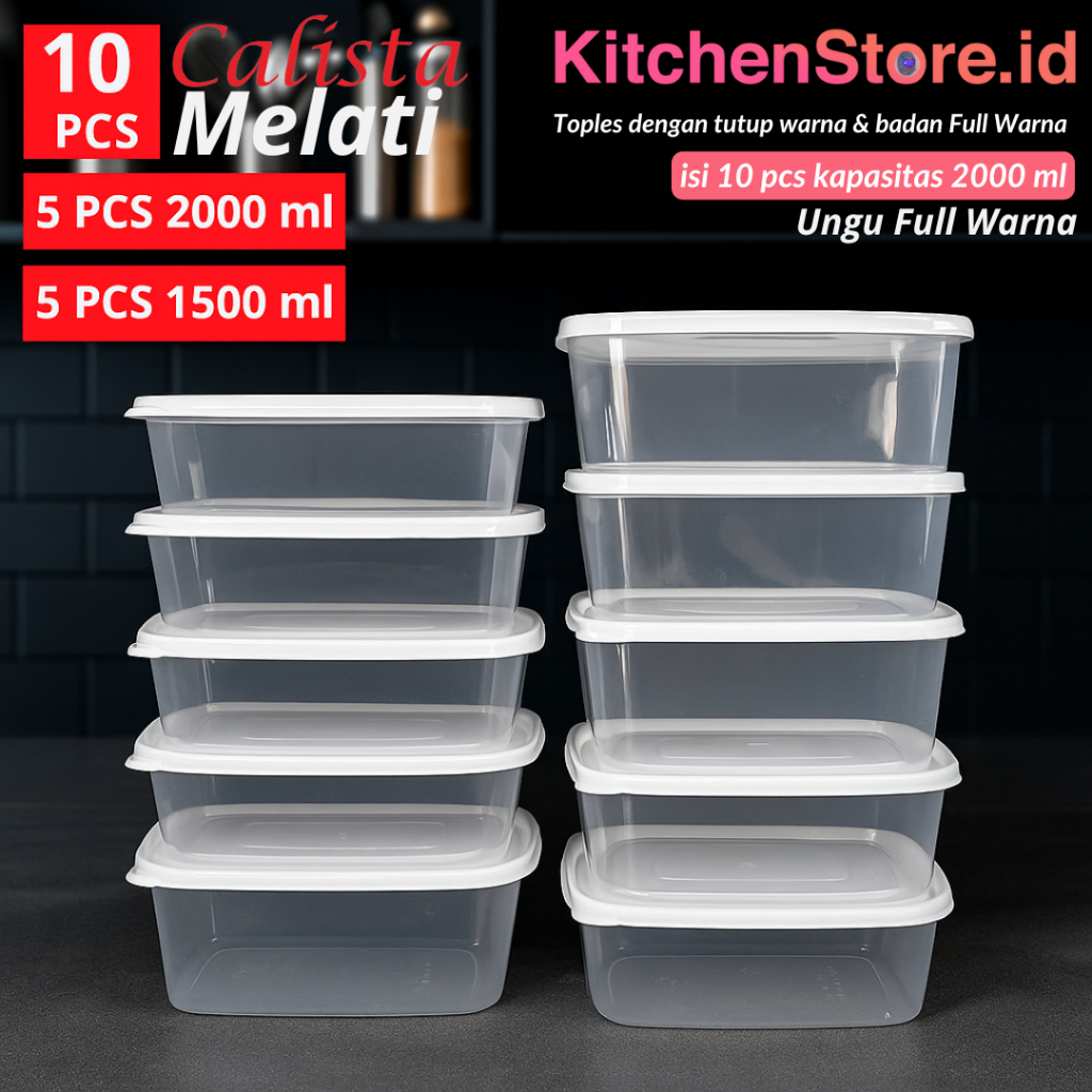 CALISTA TOPLES PLASTIK CALISTA MELATI SET ISI 10PCS FOOD CONTAINER PREP KULKAS SET TEMPAT PENYIMPANAN MAKANAN BUAH SAYUR DI KULKAS SET