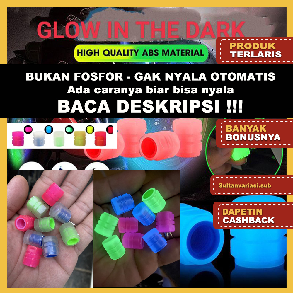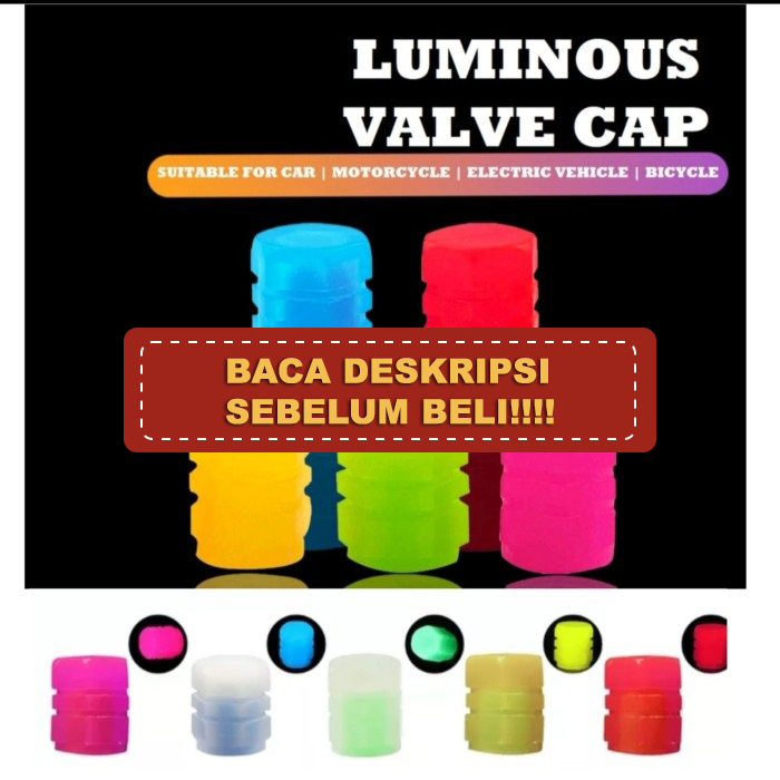 GLOW Tutup Pentil Ban Nyala Sepeda Motor & Mobil GLOW IN THE DARK NYALA Dalam Gelap Luminous American Scharder Valve