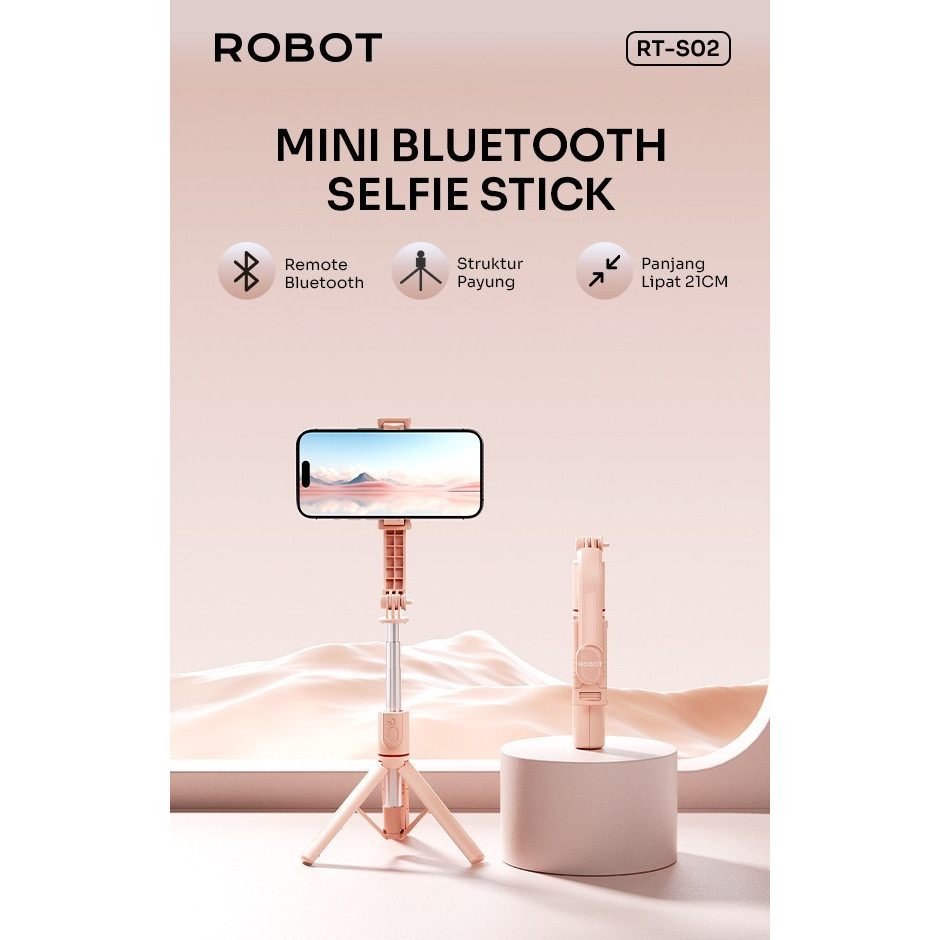Robot RT-S02 Tripod Smartphone Universal Stable Extendable Portable + Remote Control Tongsis Selfie Lipat Tripod Rotatab