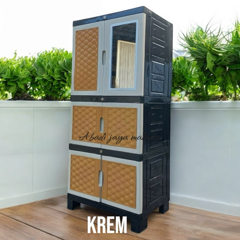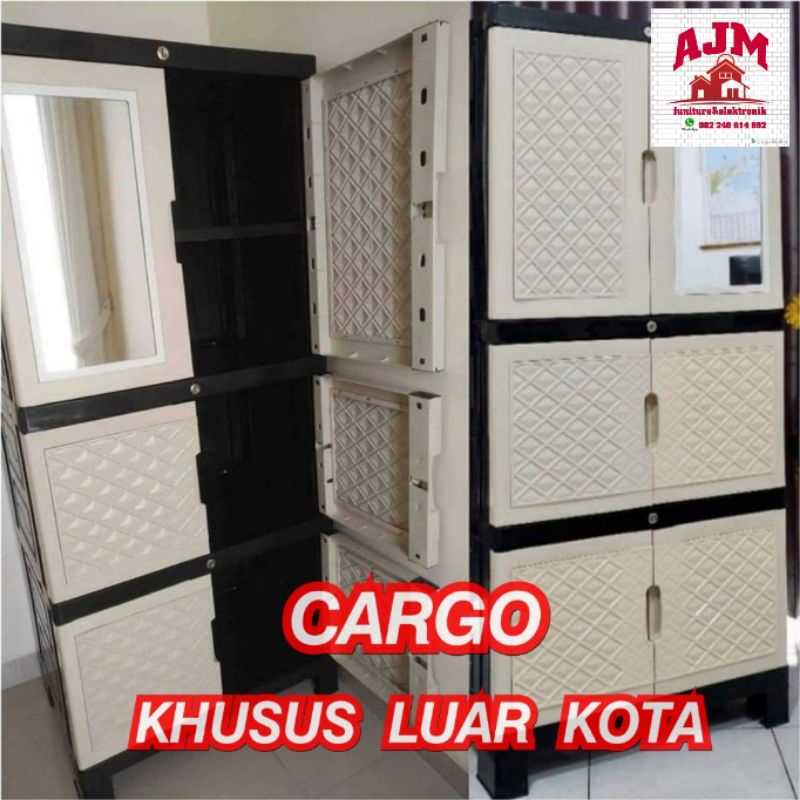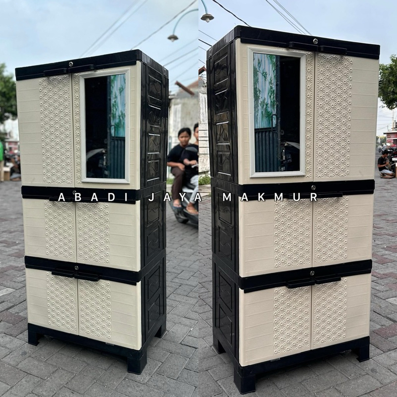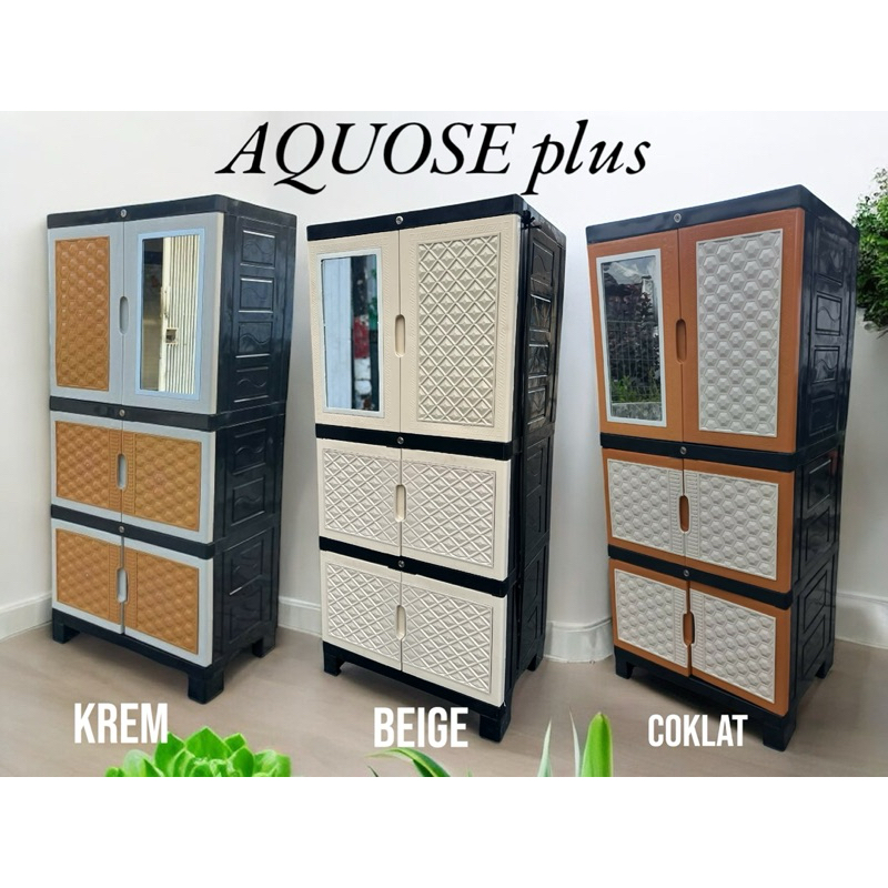 Lemari pakaian plastik jumbo full kunci + kaca aquose plus