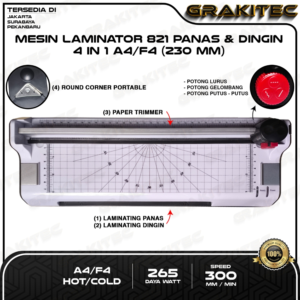 Mesin Laminating A4/F4 4in1 (230mm) 821/822/825 Fitur Combo Laminating + Paper Trimmer + Emergency Button