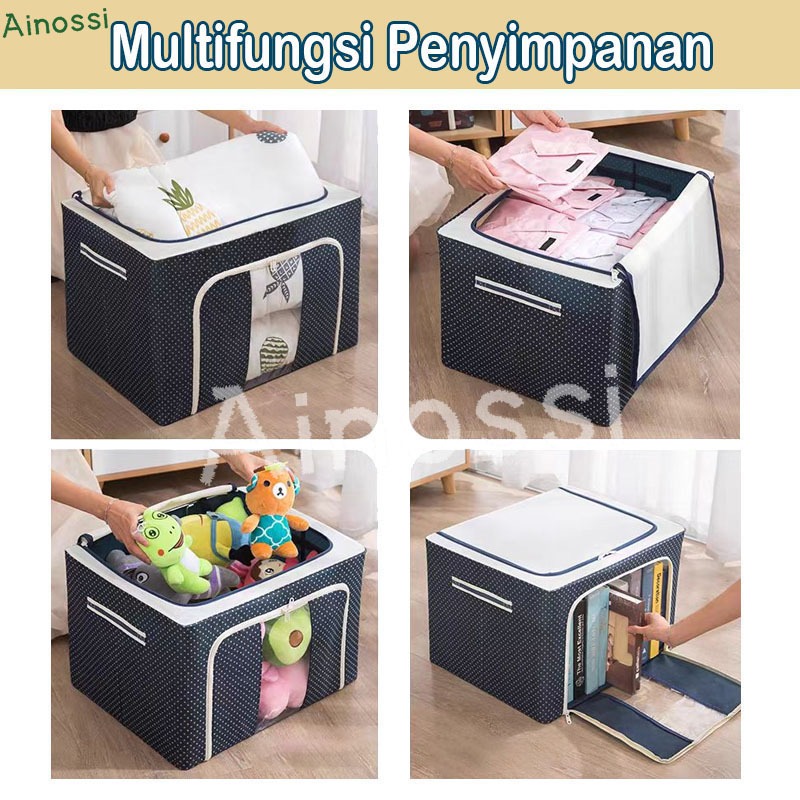 AINOSSI Oxford kotak penyimpanan Lipat storage box pakaian serbaguna mainan box tahan lembab box storage frame baja Double Zipper container box