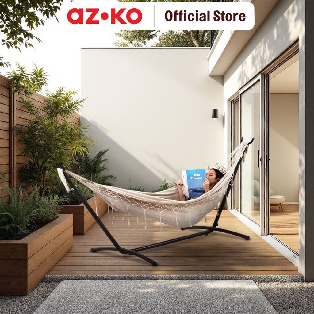 AZKO Soleil Hammock Bed Dengan Tassels - Biru Navy/Putih Tempat Tidur Gantung Ayunan Tidur Tempat Tidur Outdoor Hammock Camping