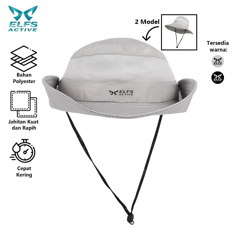 ELFS ACTIVE Topi Rimba Koboi Jala Polos Jungle Hat Hiking Outdoor