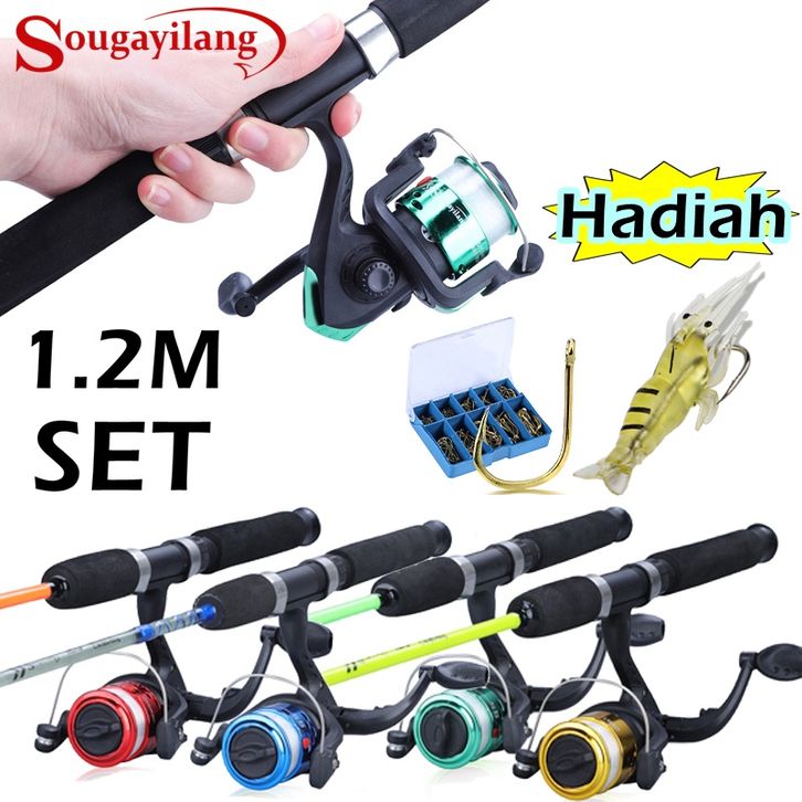 TERBARU Sougayilang 120cm Joran Pancing Set 2 Sections 1.2m Spining Rod With Fishing Reel Gear Ratio